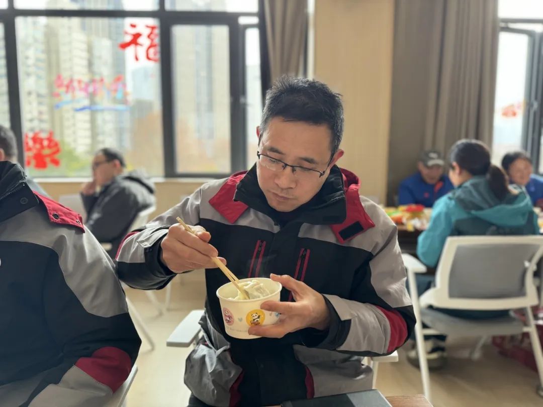 包饺子环节将活动气氛推向了高潮。只见新就业形态劳动者们围在大长桌边调馅、包饺子……大家各显其能,彼此之间有说有笑,场面热火朝天,其乐融融。饺子出锅后,工作人员立即将一碗碗热气腾腾的饺子分发到新就业形态劳动者手中。大家围坐在一起,品尝着亲手包的饺子,脸上洋溢着幸福的笑容。