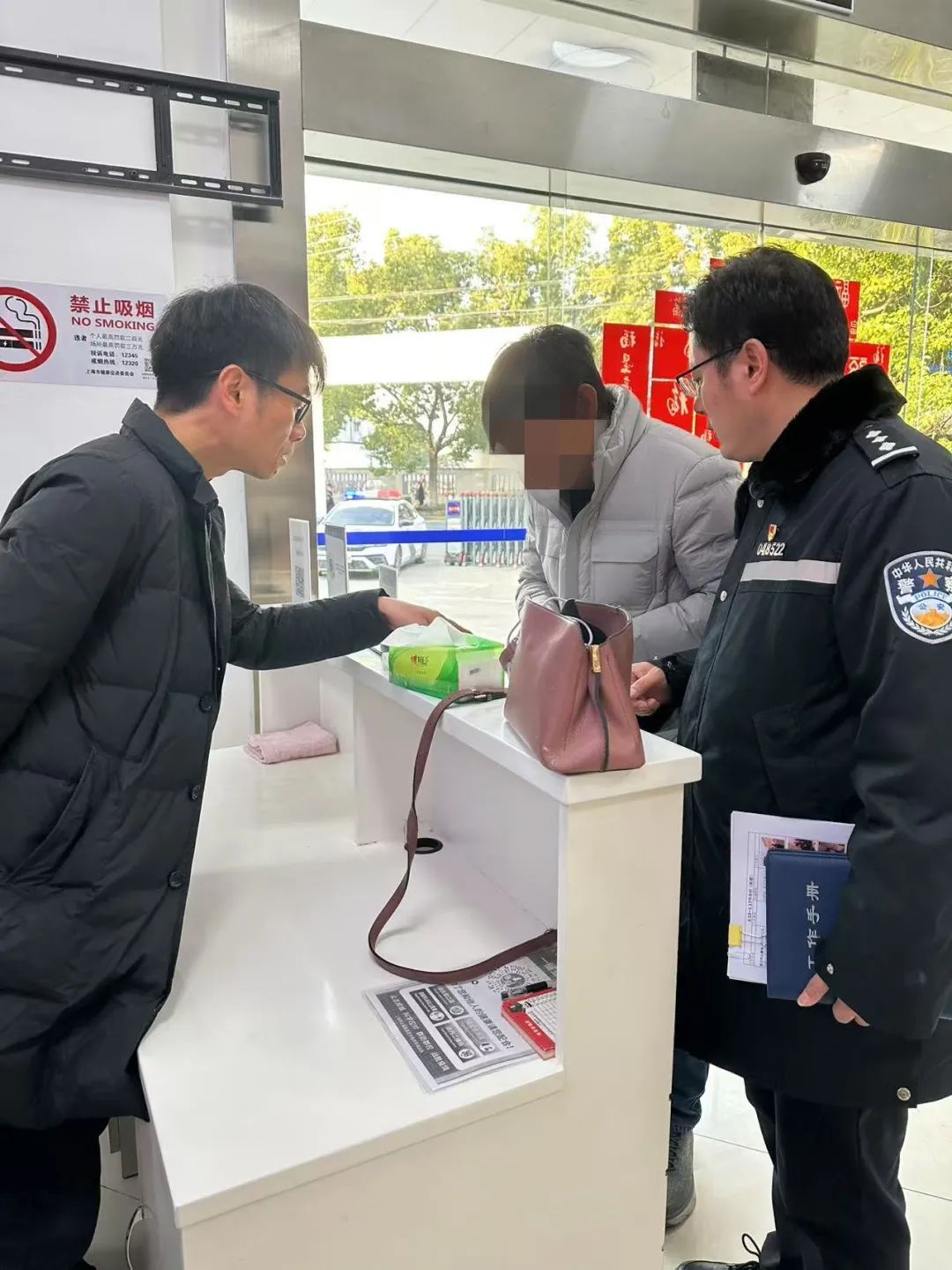 华亭派出所在稍晚时候也接到居民关女士的一起报案。据了解,关女士一家人今年正好回安徽老家过春节,本来开着自家小车,满心欢喜地踏上归乡路,却不慎在中途休息时丢了手提包,包中有一万多元现金和全家人的身份证及银行卡,十分焦急。民警在信息比对的过程中发现,两起报案的线索吻合度极高,随后,关女士的亲属张先生来到派出所认领失物。