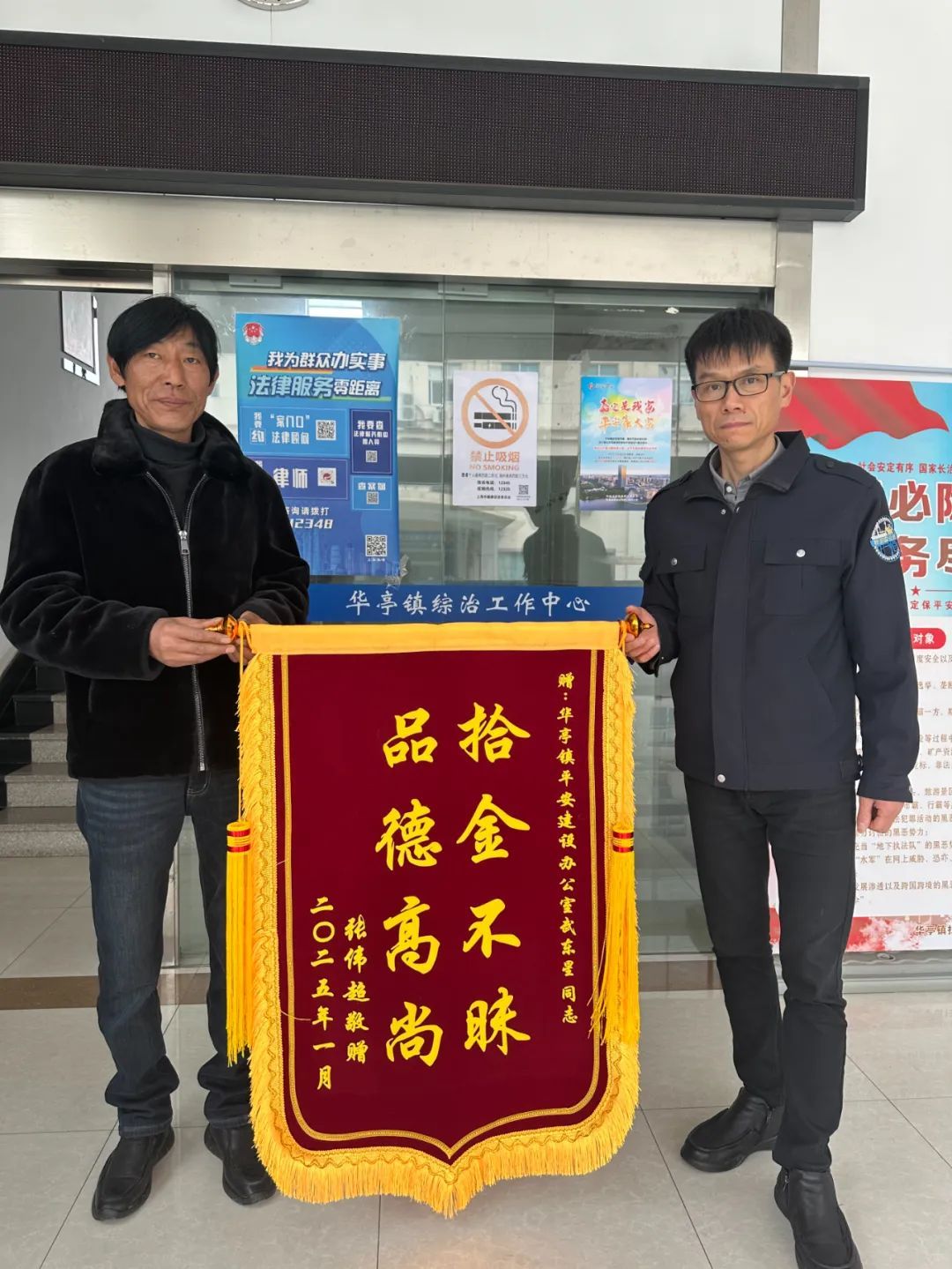“感谢您拾金不昧,要不然一家人这个年都过不好了。”近日,市民张先生来到华亭镇综治中心,向平安办工作人员武东星送上锦旗表示感谢。