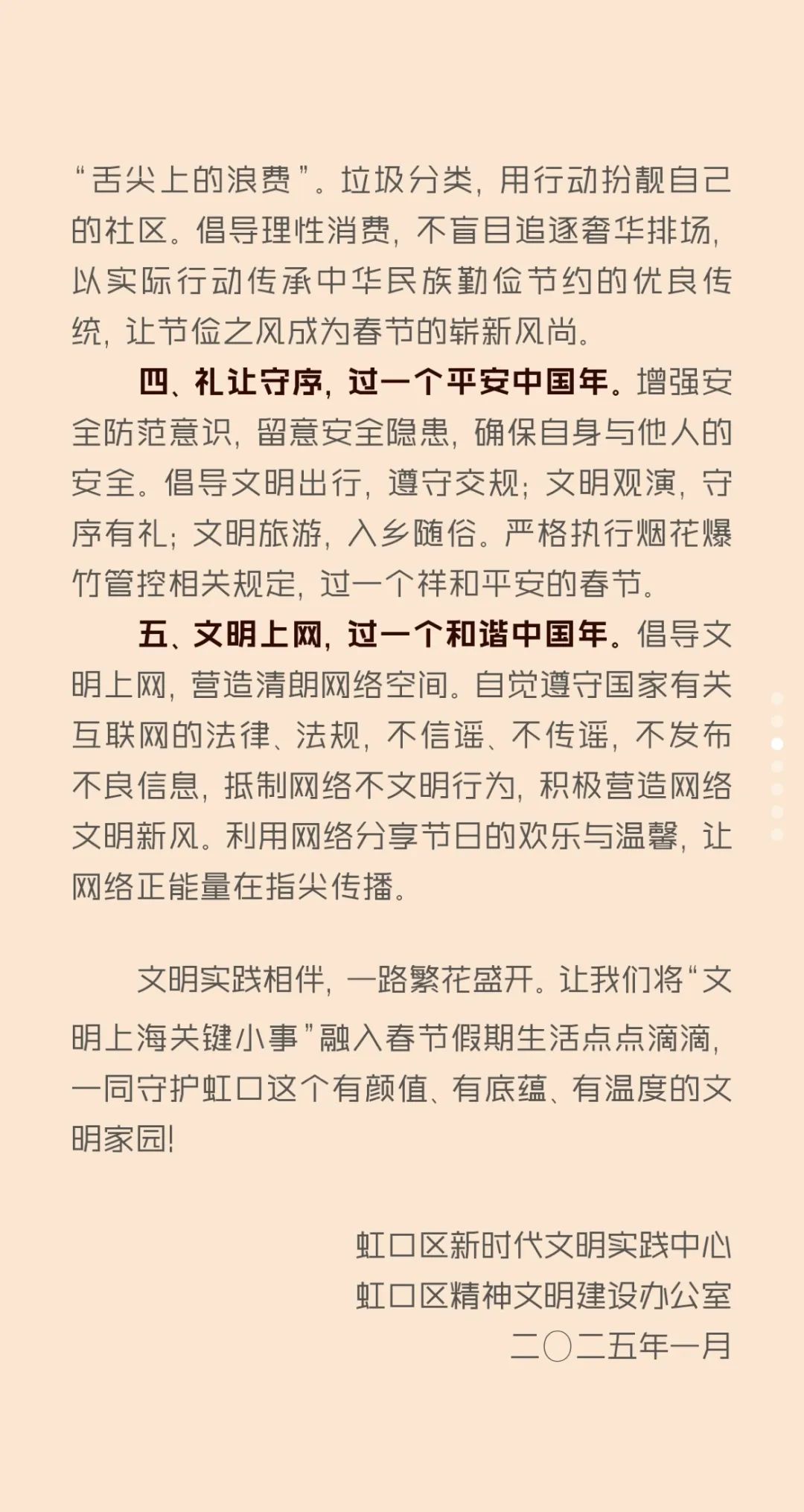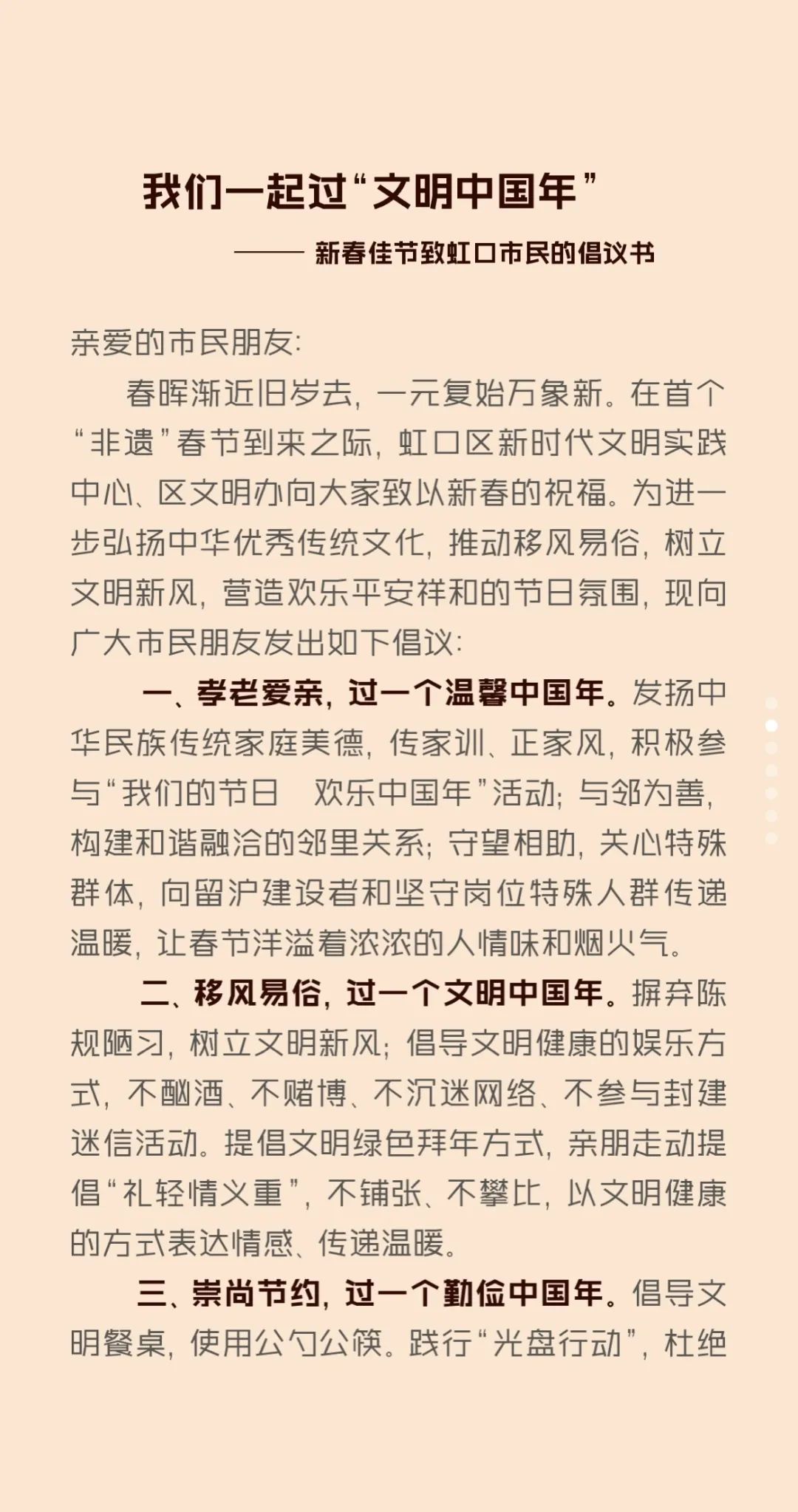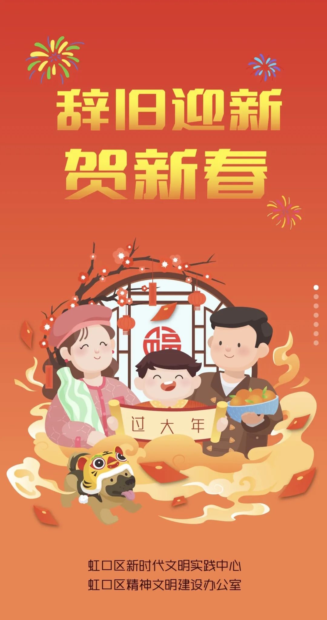 乙巳蛇年的脚步日渐临近,大街小巷张灯结彩。为持续推进“我们的节日•乐游虹口中国年”,更好服务市民群众精神文化生活,营造新春佳节欢乐平安祥和的浓厚氛围,虹口区新时代文明实践中心、虹口区精神文明建设办公室设计制作了创意H5《辞旧迎新贺新春》,让我们一同来弘扬传统美德、培育文明新风,迎接这个欢乐、祥和、文明的新年吧!
