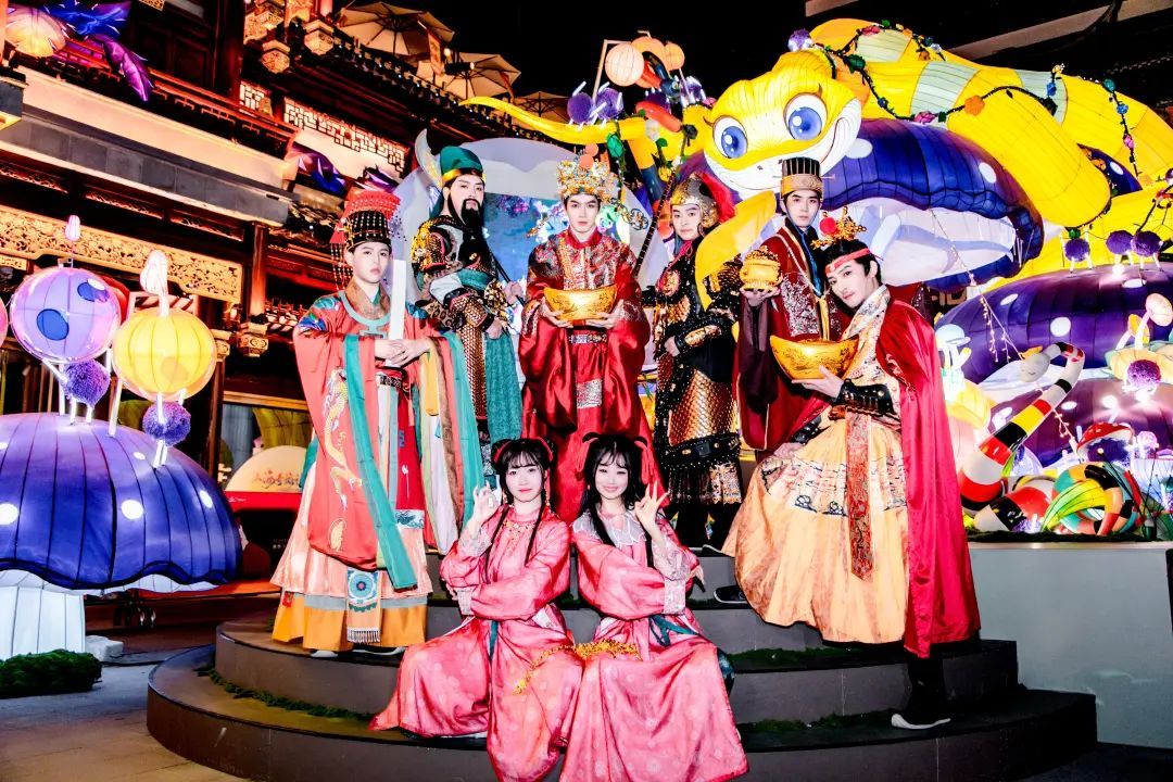 而春节至元宵期间,在五光十色的精美花灯之间,豫园商城更将举行“天官赐福,接福还家”上元节民俗活动,再现古代“天官鳌山灯”出巡的节日热闹场景,通过现场接“福牌”和沉浸式观礼第一时间将福运接回家,让市民游客体验到传统民俗原汁原味的魅力。