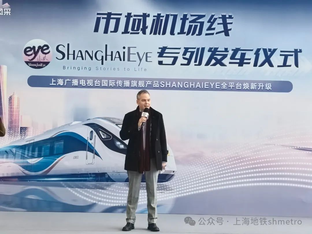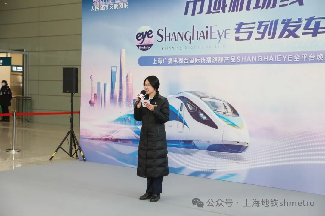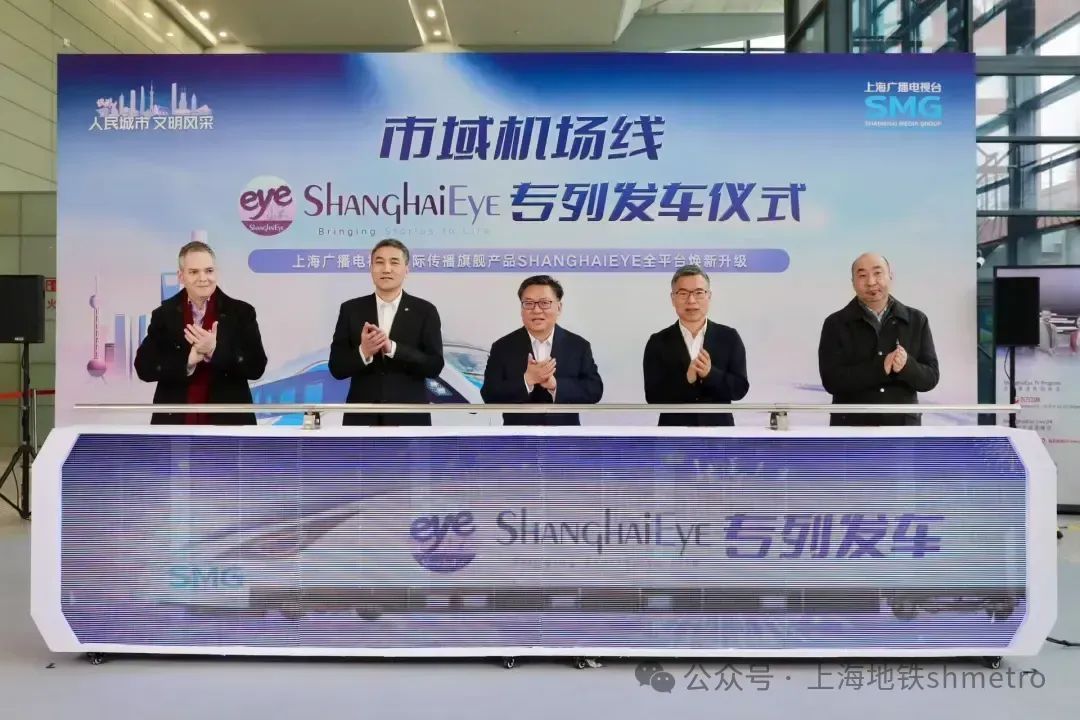 2025年1月26日下午3时许,连接上海两大国际机场的市域线开通满一个月,在上海市精神文明建设办公室的支持指导下,由上海广播电视台国际传播中心与上海申通地铁集团共同推出的"ShanghaiEye文化专列"正式首发。这是上海第一条承载服务外籍人士功能的市域机场线文化专列,标志着上海在深耕打造入境服务第一站、重点服务好广大在沪外籍人士群体上,再迈出新的有力步伐。境外游客登上专列的那一刻起,就能找到全面了解上海这座城市的资讯服务入口。 在虹桥2号航站楼,市委常委、宣传部部长赵嘉鸣,市委宣传部副部长,上海广播电视台(上海文广集团)党委书记、台长、总编辑方世忠,上海申通地铁集团党委书记、董事长毕湘利,上海广播电视台(上海文广集团)党委副书记、副台长、总裁宋炯明与上海广播电视台国际传播中心外籍专家代表共同按下启动装置,随后登上首发列车,体验“ShanghaiEye专列”的文化特色与上海速度。上海市文明办专职副主任冯芳,上海广播电视台(上海文广集团)副台长、副总裁吴茜,上海申通地铁集团党委副书记、工会主席蔡伟东等出席仪式。 上海文广国际传播中心外籍专家、上海“国际体验官”Stephen在仪式上介绍了全新升级的《ShanghaiEye》节目旨在向海外观众展示在上海、在中国生活的第一手体验。市域运营公司虹桥2号航站楼区域站站长王钰在分享中,向大家展示了市域机场线这张上海新名片的“国际范儿”,并介绍了面向海内外乘客的众多服务举措。