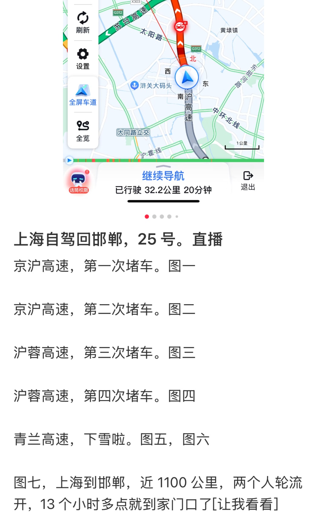 上海市交通委员会交通指挥中心官方微博@乐行上海将不断更新上海高速通行情况及拥堵路段,大家可以及时关注最新路况。