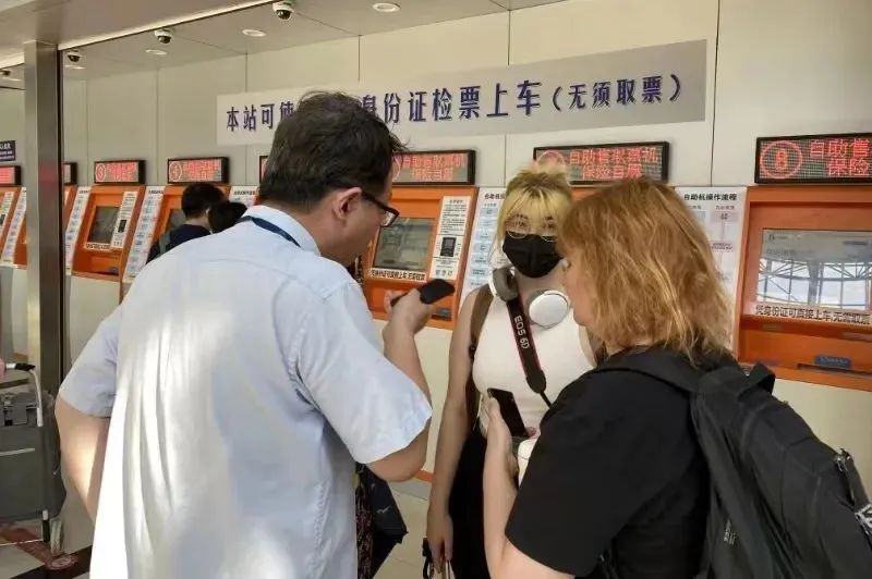 上海长途客运南站作为许多游客进入上海的重要交通枢纽,其旅游咨询服务中心的咨询员们积极行动起来。他们通过翻译器为境外游客提供订票提示、换乘指引,助力“中国行”顺畅无阻。来自四海八方的游客们在此得到及时、准确的帮助,轻松开启上海之旅,并继续踏上“China Travel”奇妙旅程。