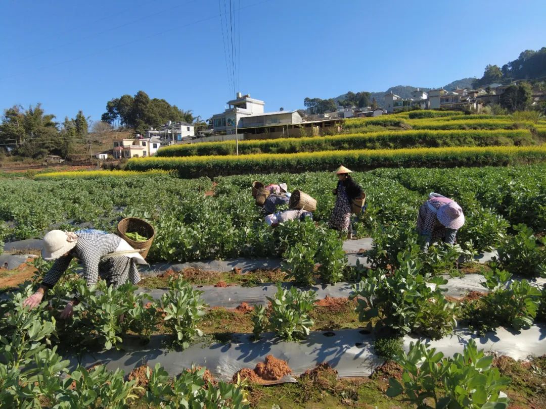 冬日的暖阳下,临翔区圈内乡文宁村270余亩冬蚕豆田迎来了又一个丰收季,翠绿的蚕豆田宛如一片绿色的海洋,豆农们穿梭其间,熟练地采摘着饱满成熟的豆包。