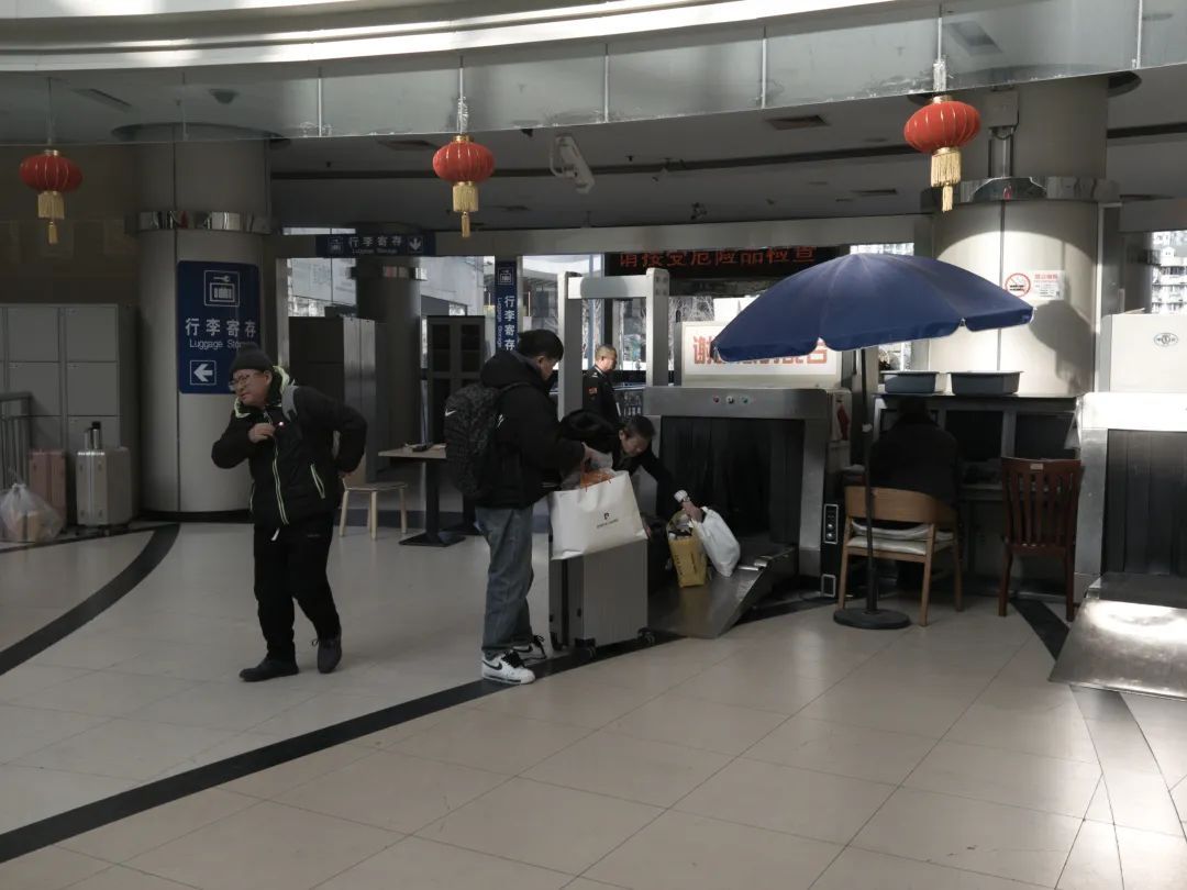 下午2点半,在上海长途汽车客运总站内,旅客们正在有序地进行着购票、候车、检票,现场秩序井然。车站内的节庆布置,让候车室内充满了年味。有的旅客特地带上了一些上海的点心,准备带回老家和家人一起品尝,在家过一个团圆年。