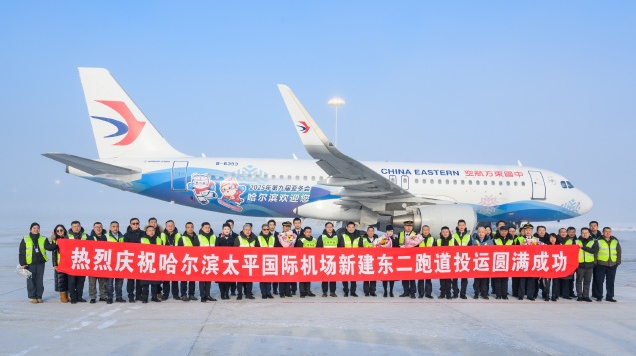 1月23日,随着东航MU5616航班“亚冬号”主题彩绘飞机顺利起飞,哈尔滨国际机场二期扩建工程新建东二跑道正式投运,标志着哈尔滨国际机场成为东北地区首条拥有双跑道的机场,也为第9届亚洲冬季运动会提供更好的抵离服务。