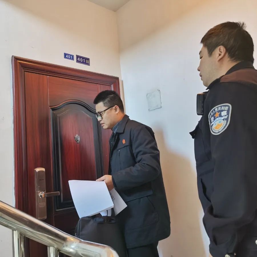 “金某,你拖欠黄某劳务费这么久,他还是你的老乡,请开门配合执行工作。”这已经是执行干警高尚尚第二次上门拘传被执行人金某,通过申请人提供的线索和公安协查,执行干警成功找到了金某住所。面对闭门不出的被执行人金某,高尚尚不断释法明理。在执行压力下,金某终于走出大门跟随执行干警回到法院。