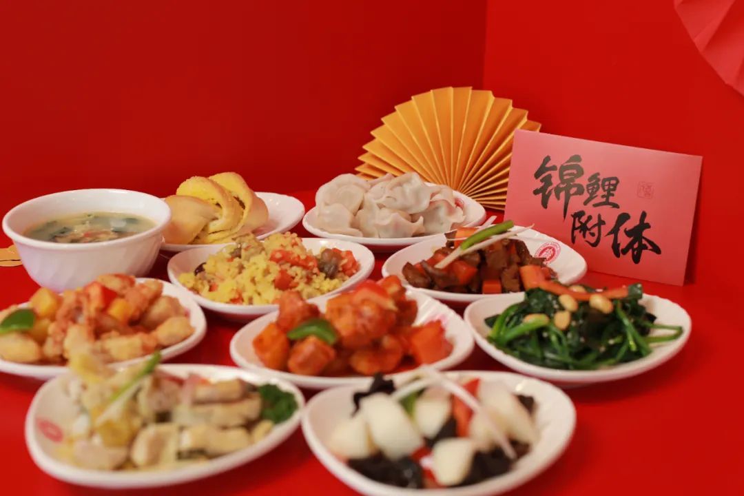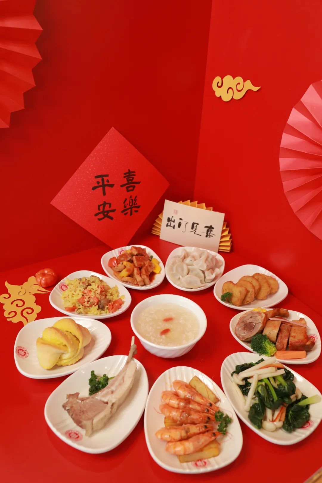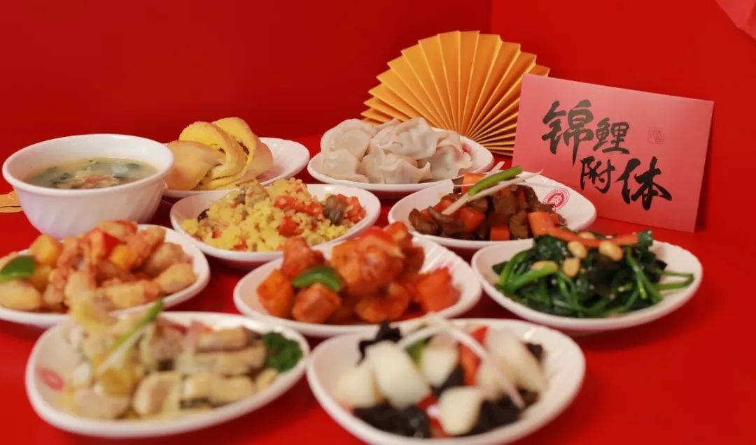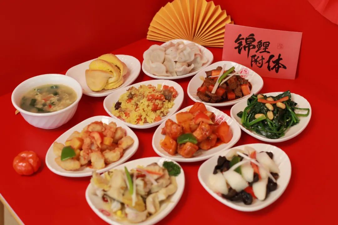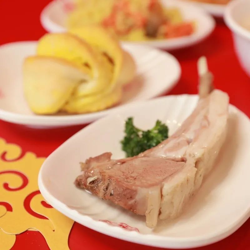 A套餐:黄焖羊肉、香辣小酥肉、香菇青菜、酸辣土豆丝、牛肉水饺、发糕、水果1个、醪糟汤