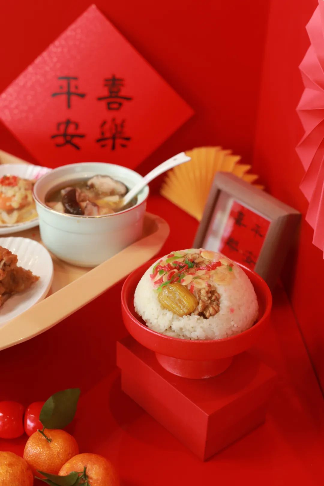 A套餐:红焖羊肉、辣子鸡、粟米西兰花、麻辣素鸡、牛肉抓饭、芝麻烤饼、水果一个、醪糟汤
