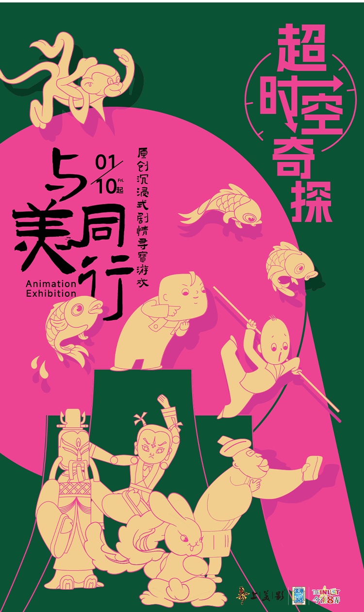 滨港商业中心携手上海美术电影制片厂,联合带来“与美同行”海派动画传承献礼大展。精选《拔萝卜》《小蝌蚪找妈妈》《曹冲称象》等8部经典作品,基于沉浸式剧情寻宝游戏《超时空奇探》,打造融合展览、戏剧、解谜、游戏等多重元素的创意场景与复合体验。