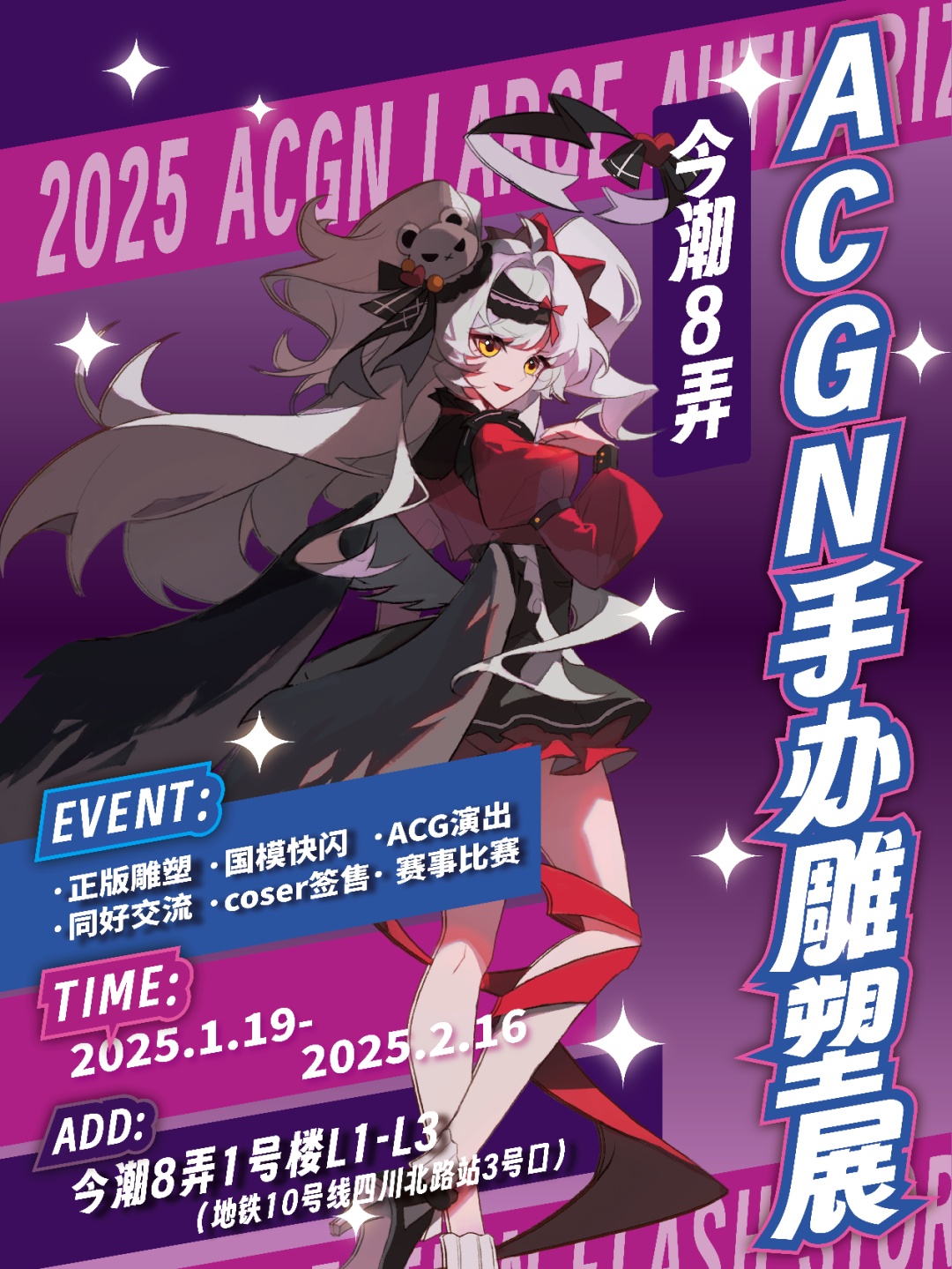 由AX次元境主办的2025年度ACGN手办雕塑展在今潮8弄开展。展期跨越寒假、春节、元宵,展览汇集ACGN主题雕像展、微缩模型展,并推出COSER巡游街拍与合影互动、ACGN歌手演出、微缩桌游万元赛等多重活动。