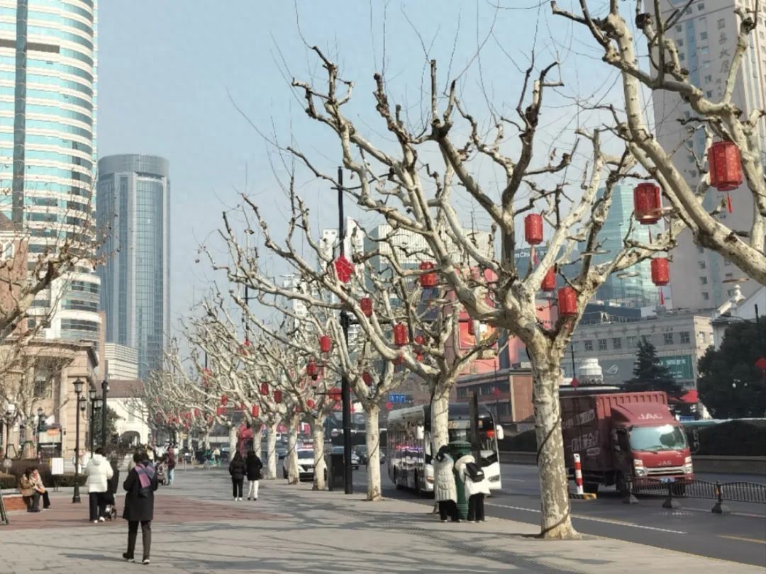 今日申城天气晴好,虽然气温略有下降,却丝毫未减人们出行的热情。徐家汇街头,树上挂满了红灯笼,随风轻摆,洋溢着浓浓的年味。行人们或裹紧外套匆匆赶路,或悠闲漫步享受阳光,脸上洋溢着节日的喜悦,让这个冬日里的街头充满了生机与活力。