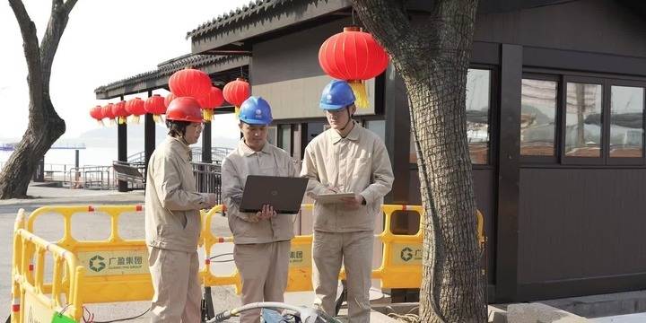 在春晚无锡分会场有一幕“千帆竞渡”场景,光影效果十分震撼。何光华表示,为了这一幕场景,团队在鼋头渚景区仅用一天时间,积极创新方案,采取沿湖堤悬空敷设、沿山坡蜿蜒敷设的方式,新敷设高压电缆750米、低压电缆3400米。“我们的电缆可以说是既爬山又涉水,因为现场这么多的电缆,如果我们明敷的话,会非常影响现场的美观,为了让大家体验到这种‘无感’,我们当时选择了一个非常复杂的方案。”