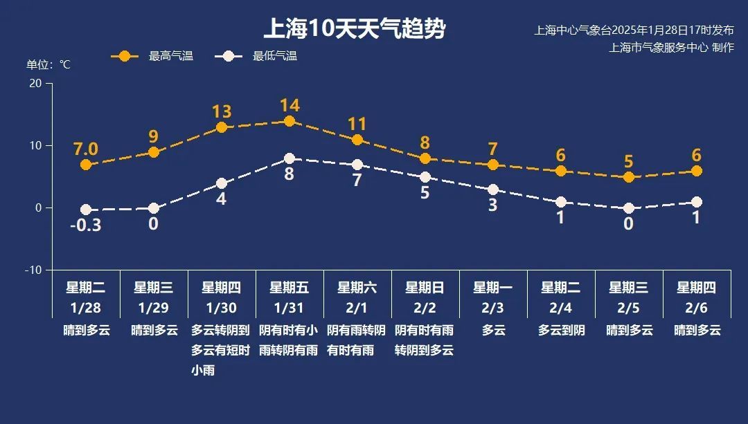1月31日(周五):阴有时有小雨转阴有雨,8~14°C