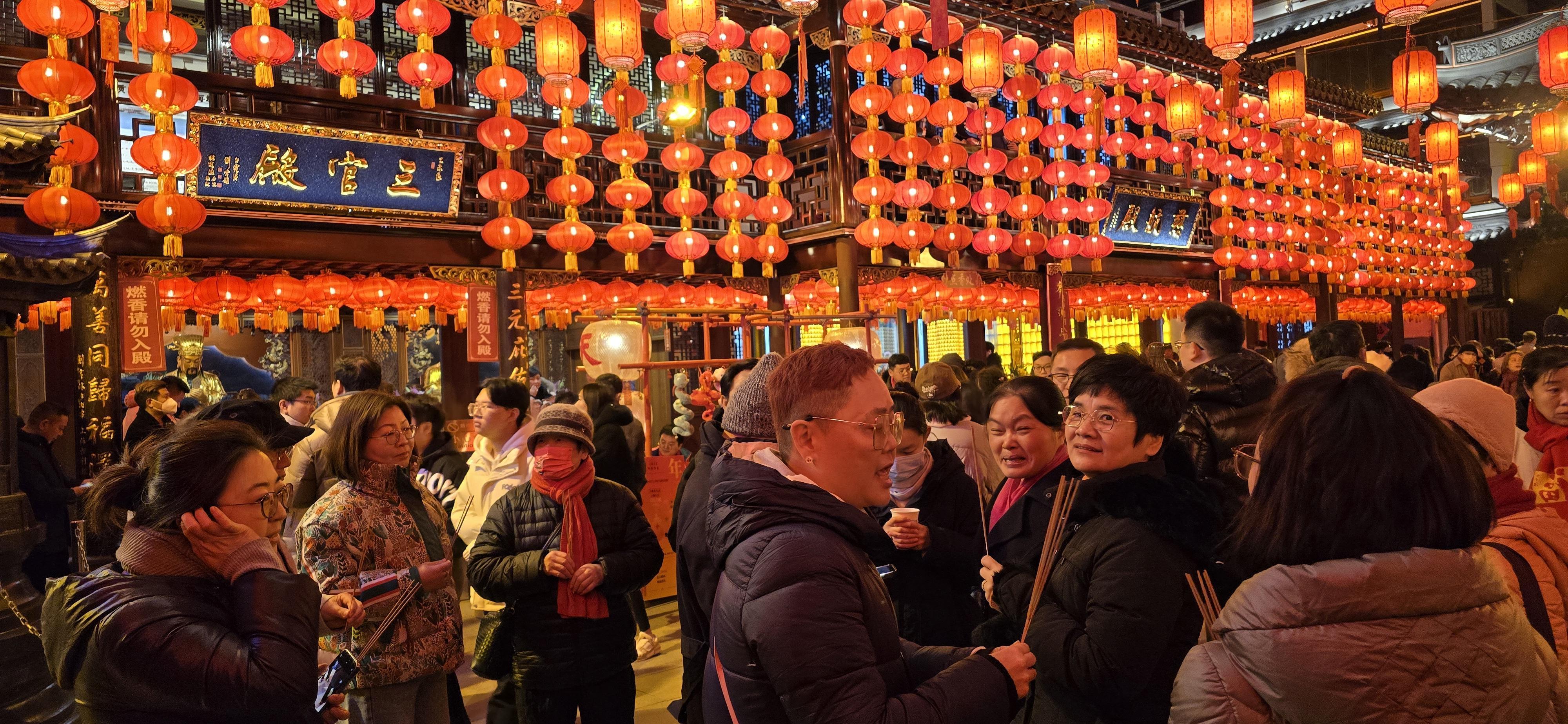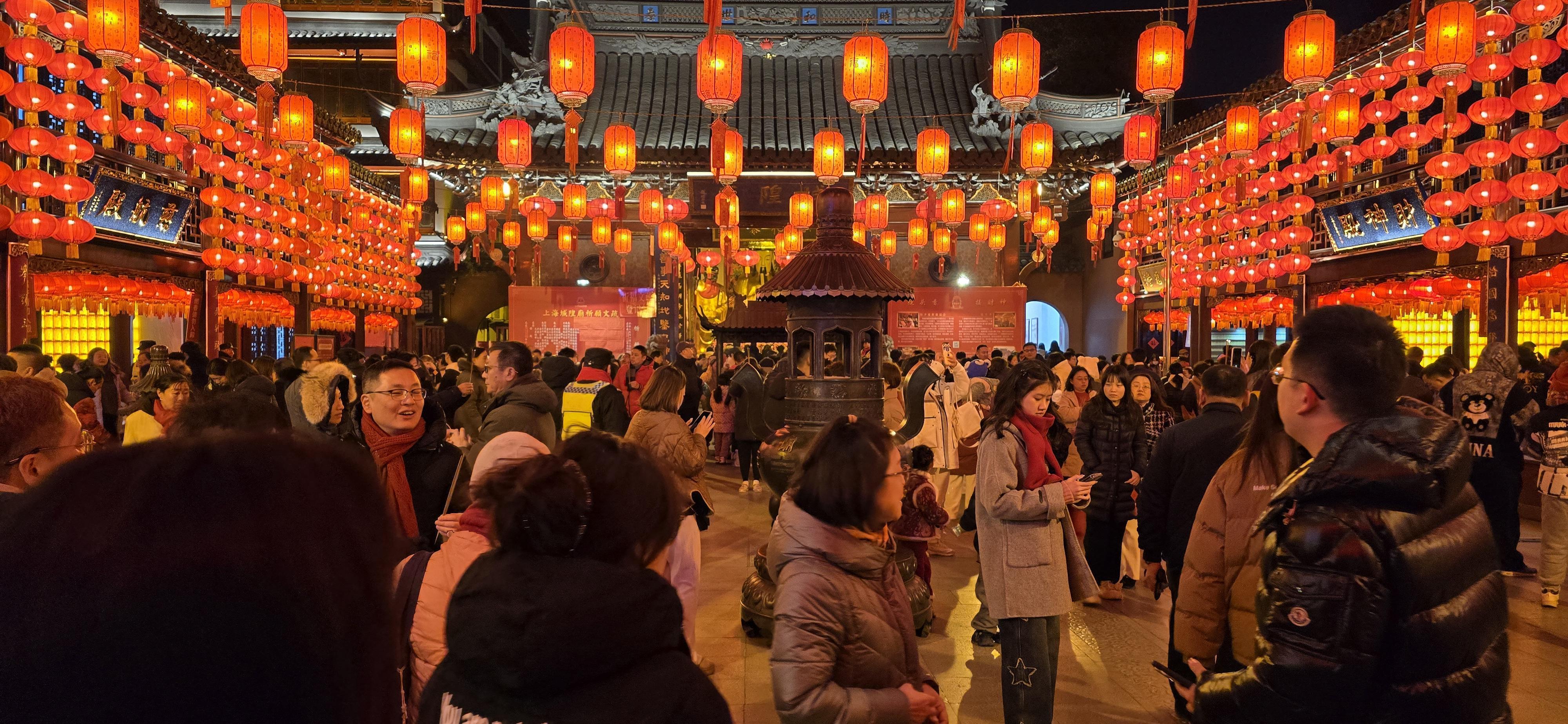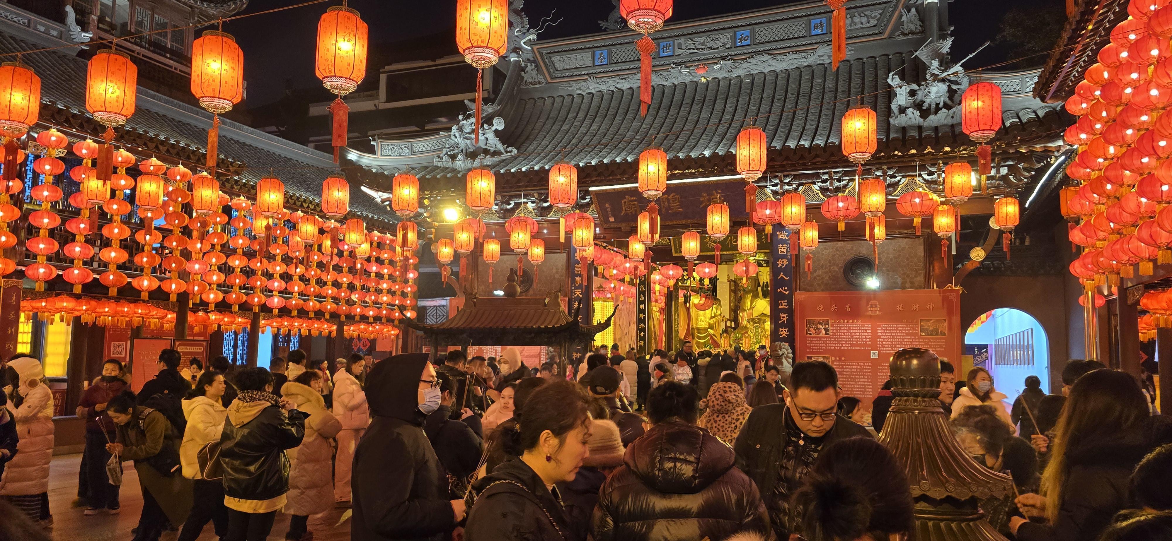 昨晚,市中心城隍庙张灯结彩,人潮涌动,呈现出一派热闹非凡的景象。在享用完温馨的年夜饭后,众多市民纷纷涌向这里,点燃香烛,虔诚祈福,共同迎接新春的到来,祈求来年风调雨顺、平安喜乐。
