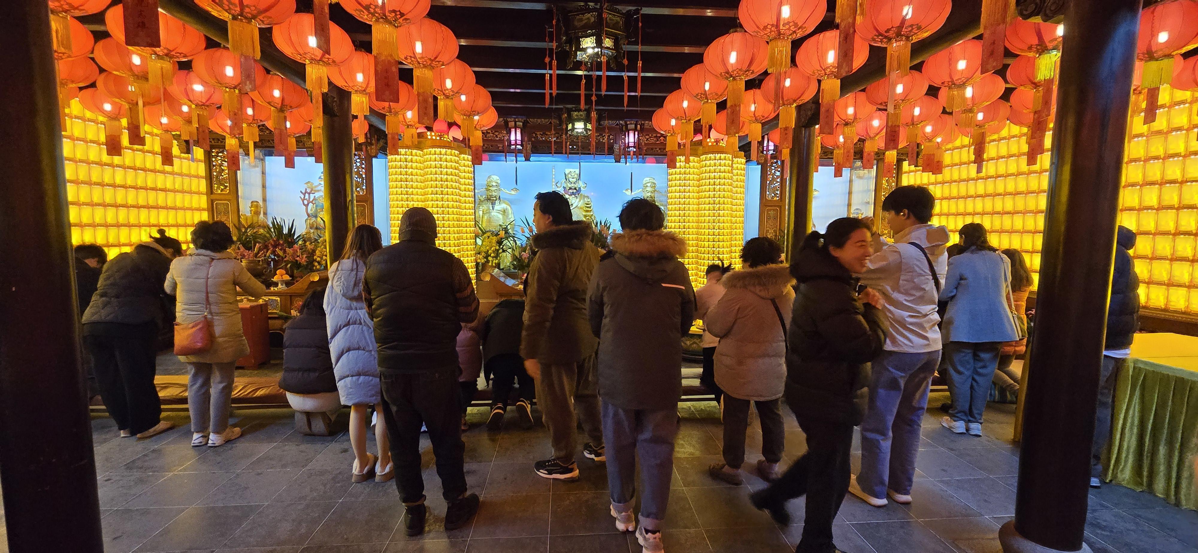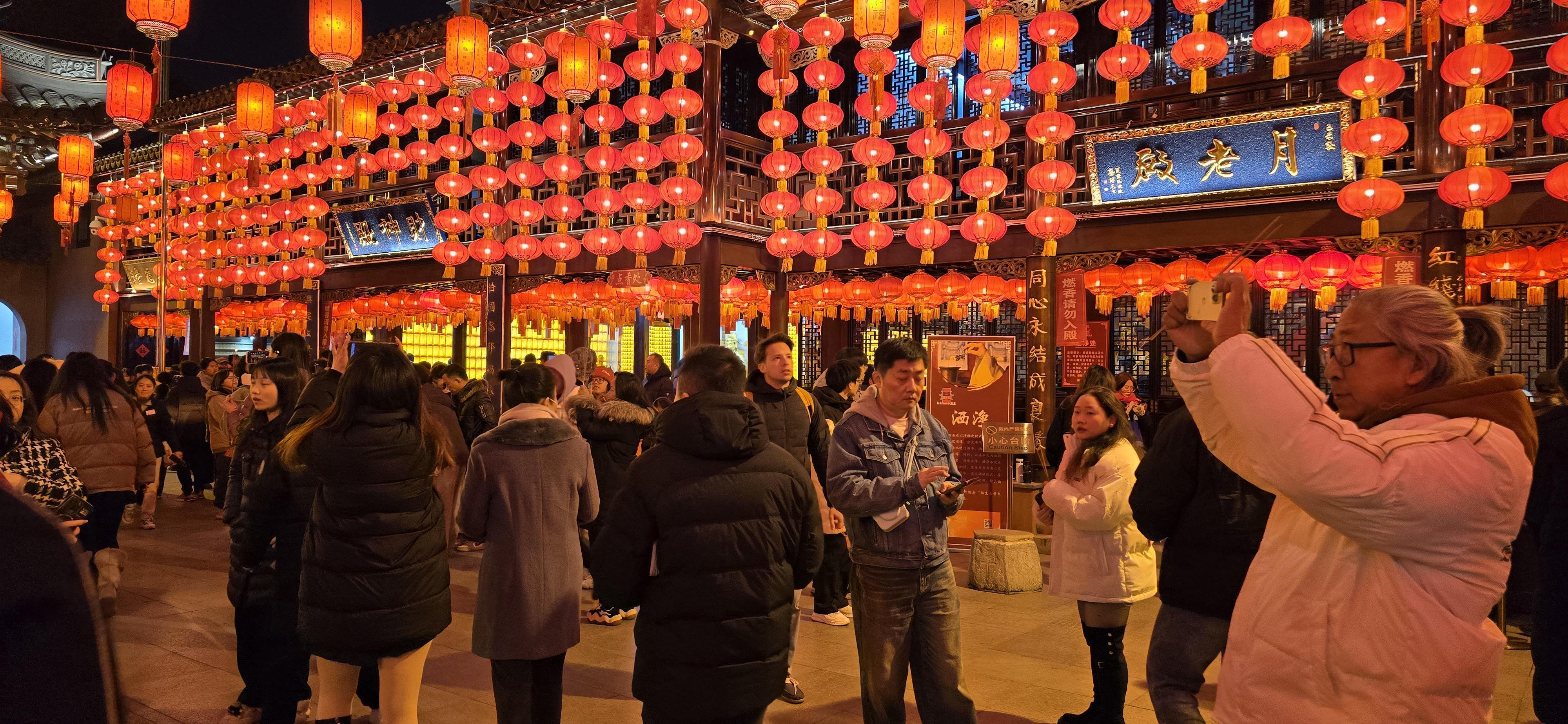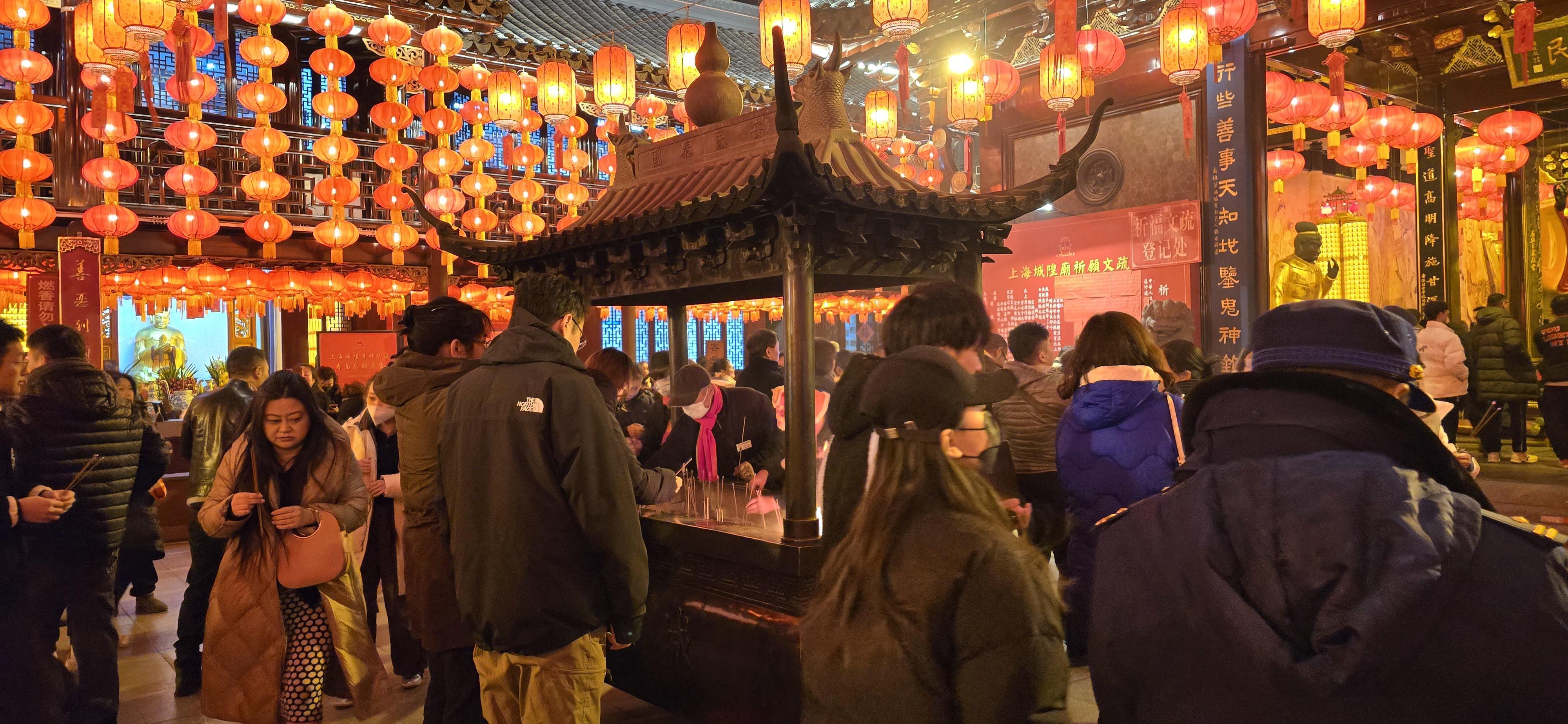 昨晚,市中心城隍庙张灯结彩,人潮涌动,呈现出一派热闹非凡的景象。在享用完温馨的年夜饭后,众多市民纷纷涌向这里,点燃香烛,虔诚祈福,共同迎接新春的到来,祈求来年风调雨顺、平安喜乐。