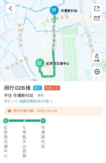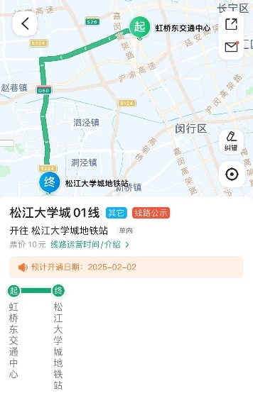 起讫站:自虹桥东交通中心(同虹桥枢纽4路站台)始发直达松江大学城地铁站