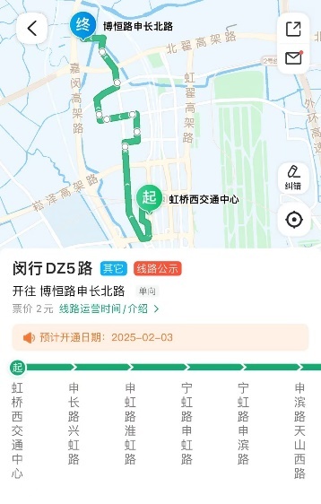 下客站:申长路兴虹路、申虹路淮虹路、宁虹路申虹路、宁虹路申滨路、申滨路天山西路、申长路天山西路、申长北路北翟路、博恒路申长北路