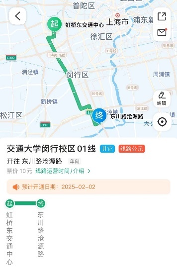 下客站:上海交通大学闵行校区(东川路)