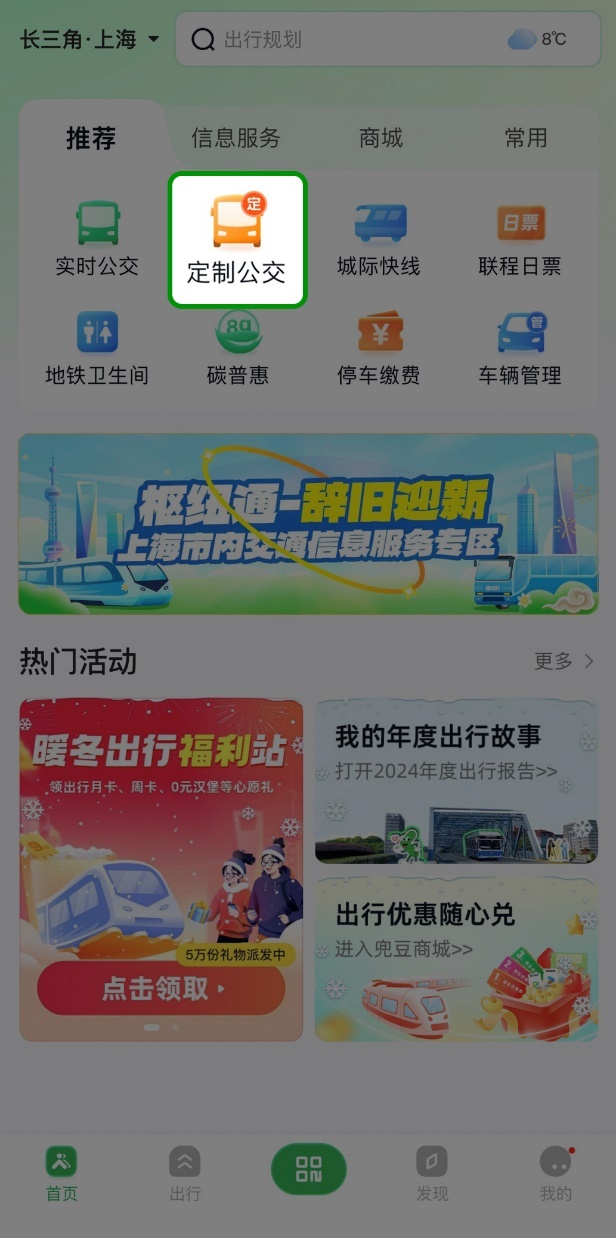 据悉,本次春运定制公交保障线路的设置依托上海公共交通数据授权运营的创新机制,是上海MaaS系统大数据能力的试点应用。该方案将去年春节期间从虹桥枢纽始发的出租汽车(巡游+网约车)订单数据进行整合,分析今年春运潜在客流的出行需求,为定制公交线路设计提供决策辅助。有需要的市民也可登录“随申行”APP或微信小程序进入首页“定制公交”服务模块,进入“需求征集专区”提交更多定制公交需求。