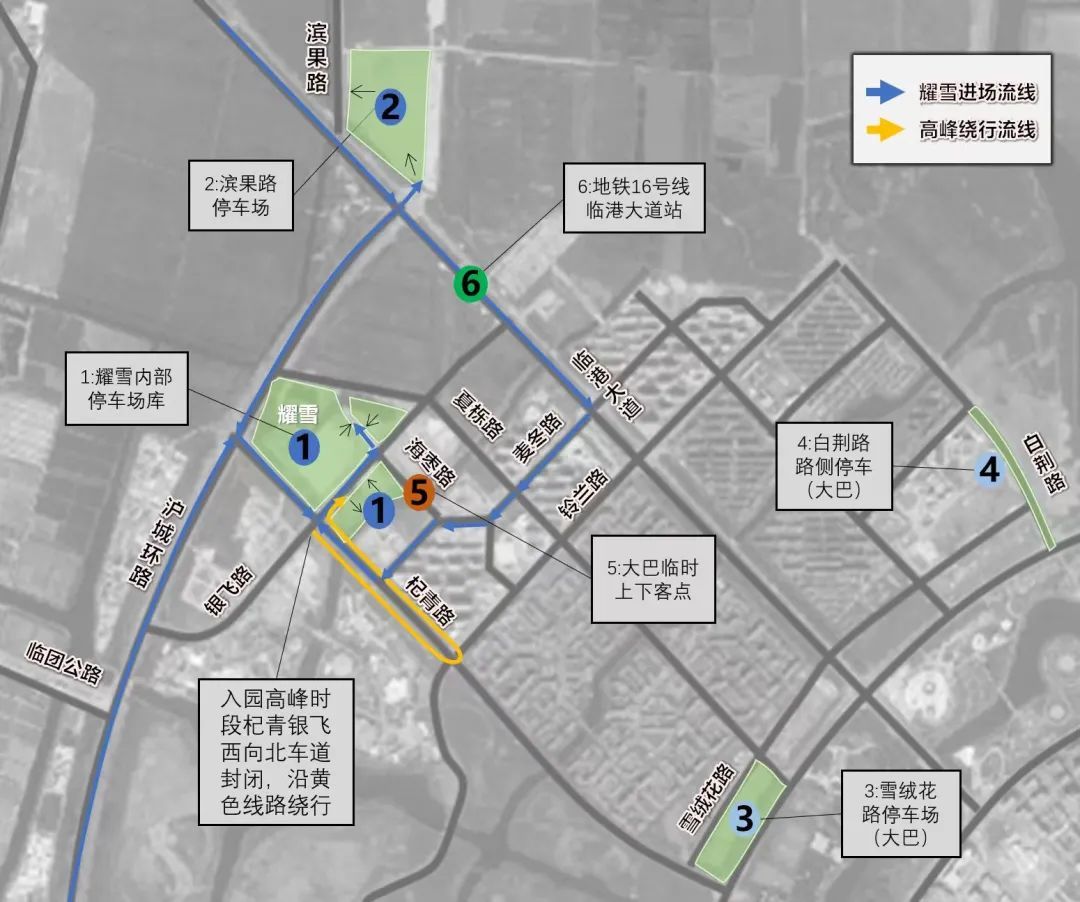 1、入园高峰时段,杞青路/银飞路交叉口将采取交通管制,西向北左转车道封闭,入园车辆须经杞青路/铃兰路交叉口调头驶入银飞路。