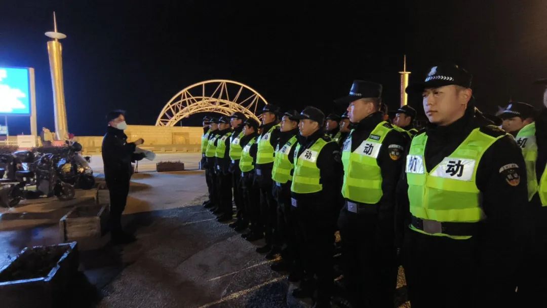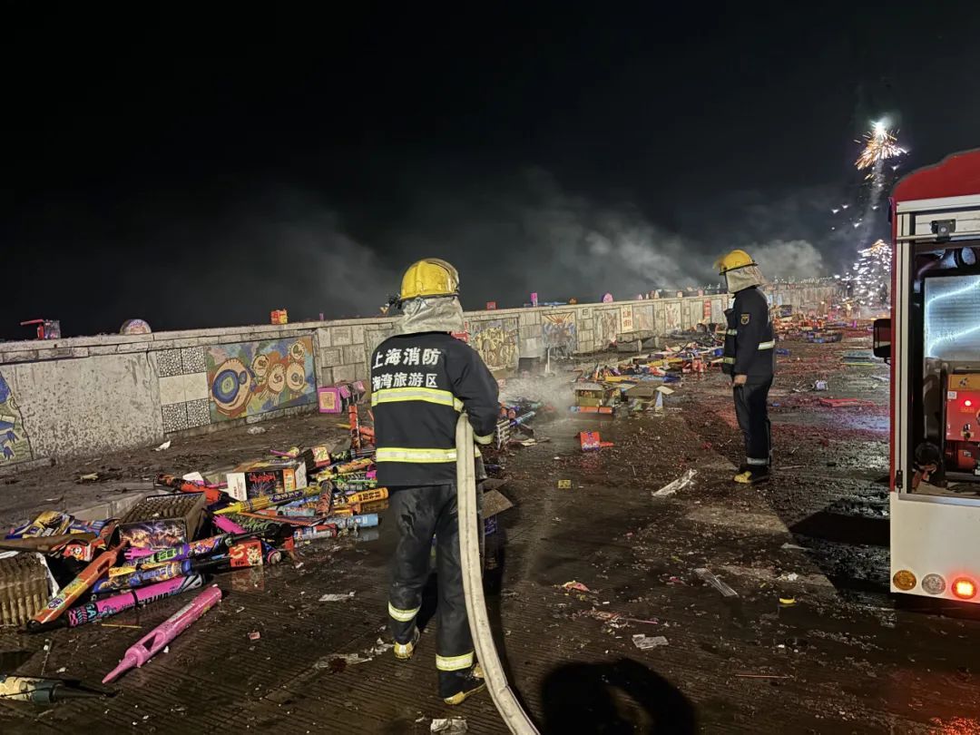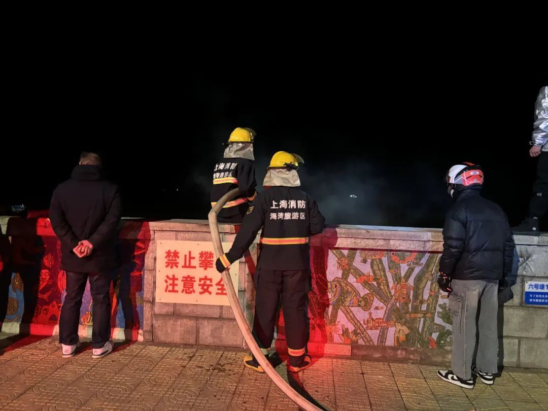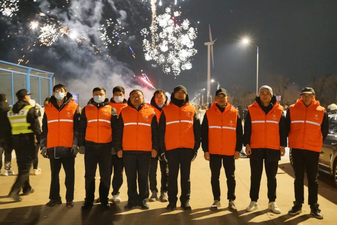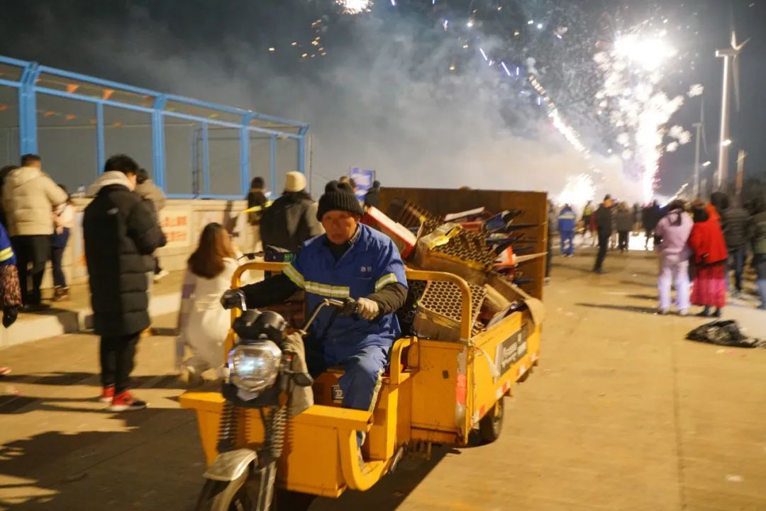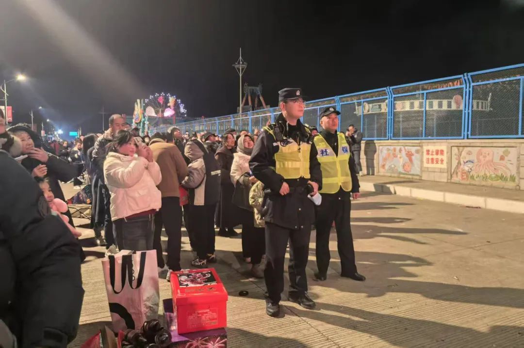 穿梭在人群中,指引着市民和游客有序观看烟花