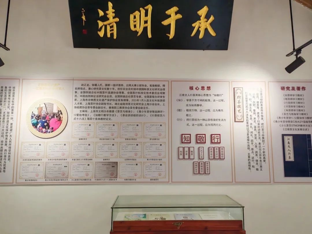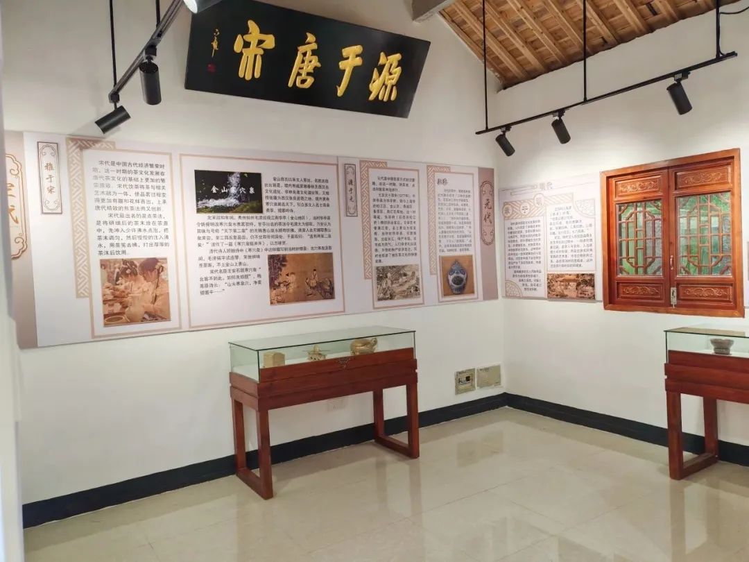 在江南文人行茶非遗体验馆里,人们可以沉浸式体验和感受茶文化。此外,从文化展示墙上,了解唐代煎茶、宋代点茶、明代瀹茶、清代工夫茶、江南文人行茶等茶文化历史发展脉络,进一步感受茶文化的博大精深。