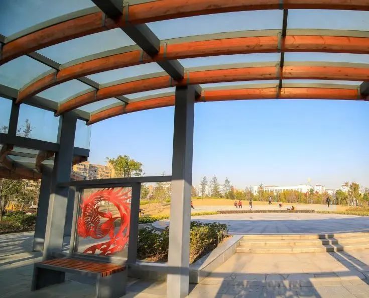 公园占地近20000平方米,园内设计融入鹤的元素,以引鹤、招鹤、戏鹤、放鹤等景观展示,演绎“鹤舞剪影”的绿地主题。公园的角角落落镌刻着剪纸的情怀与故事,人们散步其中,传统情节与地域文化以剪纸的形式,跃然于眼前。