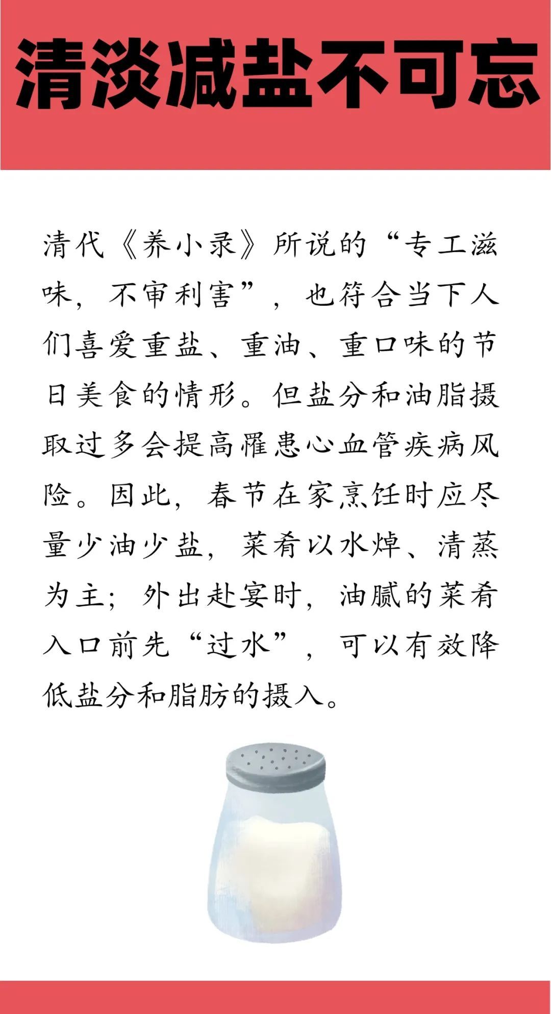 过年期间,大多数家庭是鱼肉满桌、菜肴超量、酒足饭饱的状态;冰箱中也堆满了各种剩菜。胃肠常被美食弄得十分疲惫。急性肠胃炎、过敏、感冒等已成为节日假期里的多发病,严重时还会出现胰腺炎、中风、心肌梗死等疾病。春节如何健康吃?一起听听这5条建议!