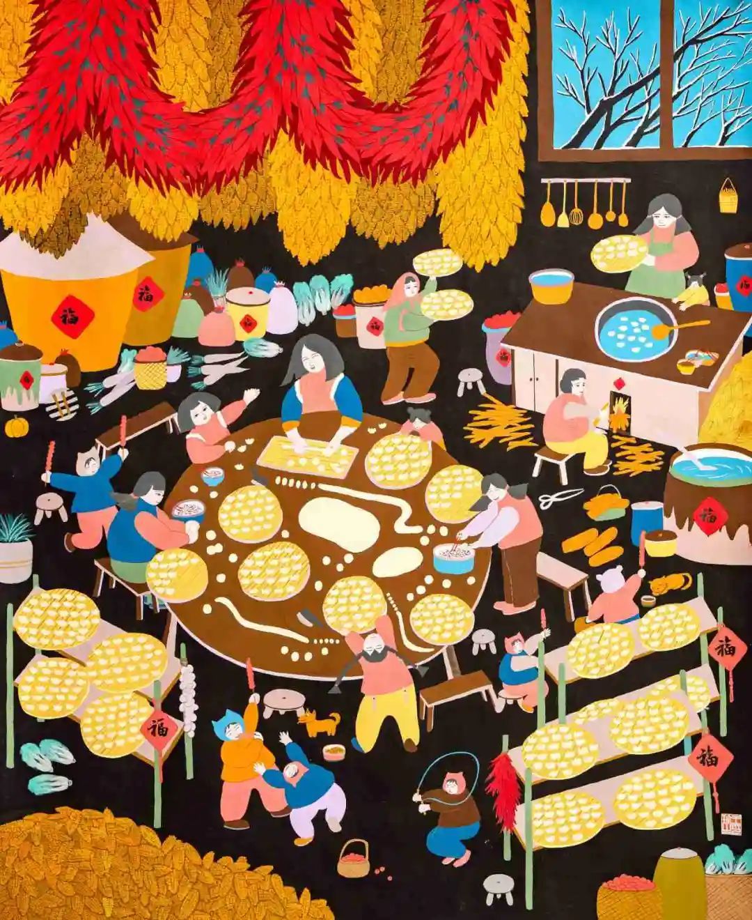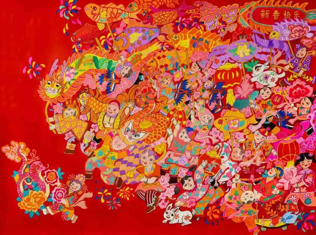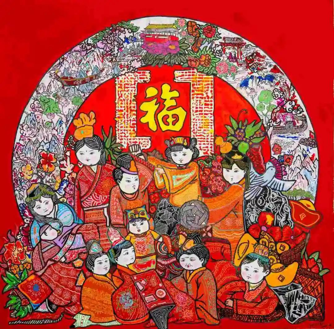 千家万户焕新颜,瑞景祥符迎新春。 作为“年文化”的重要符号,年画承载着岁月的传承与人们对未来的期许。一张张精美的年画,不仅点缀了节日的喜庆,更描绘了吉祥、幸福的生活愿景。由中央宣传部文明实践局、文化和旅游部公共服务司、中国美术家协会联合举办2025年“新生活·新风尚·新年画”美术创作展示活动正在红火展出中。 让我们在年画的浓浓年味中 感受传统文化的魅力 寄托对新年的美好祝愿 共庆万事如意的新篇章 《平安喜乐迎五福》 朱喜 《喜盈门》 朱桂兰 《迎新年》 张翔洲 《正月正》 张慧迪 《包饺子·庆团圆》 王珍 《过年中的老街》 王青 《福报新春》 沈利忠 《盛世新春去拜年》 胡贵峰 《福娃闹新春》 陈秀梅 《土家年夜饭》 陈素英 新 春 快 乐