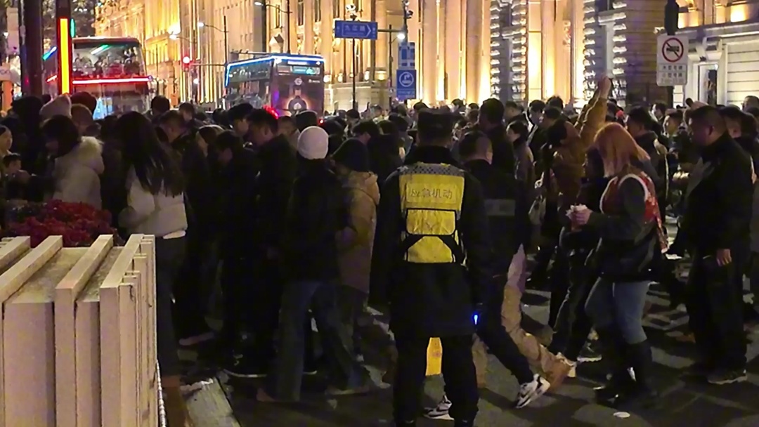 外滩治安派出所民警刘一凡介绍:“目前,我们根据人流量的情况,在重点区域投放了更多的警力。在中山东一路南京东路口,我们采取了南进北出的措施,实现单侧通行。在江堤的所有口子,我们都进行了限流,采取阶段性开放的方式,确保江堤上没有过多的人流拥挤,保持畅通无阻。如果人流量达到一定程度,我们会请求增派警力。今天,在中山东一路南京东路口,我们可以看到武警官兵在进行开放式入口的开关措施。未来几天,如果我们发现江堤上的某个口子人流聚集,我们会及时下达指令,告诉民警采取关闭或开启的措施,确保拥挤的人群能够及时得到疏散。”