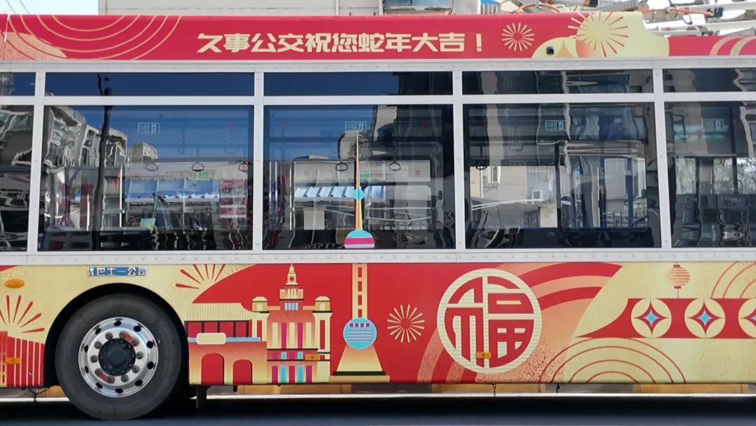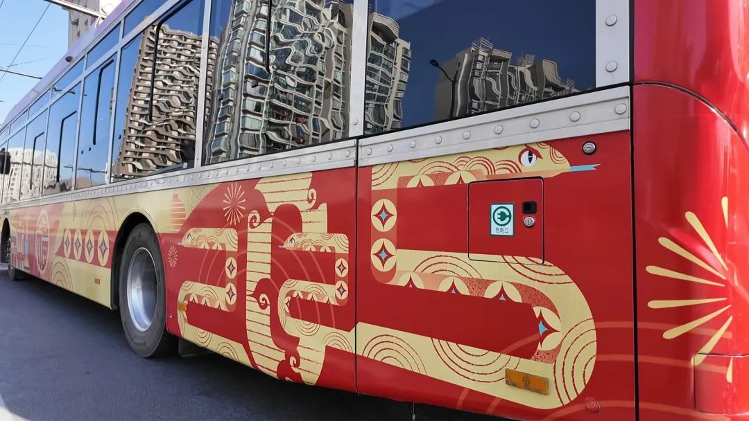 在岁末迎新之际,一辆14路公交车换上了蛇年新春涂装,陪伴来往的路人们,辞旧纳新,一同开启新的一年。