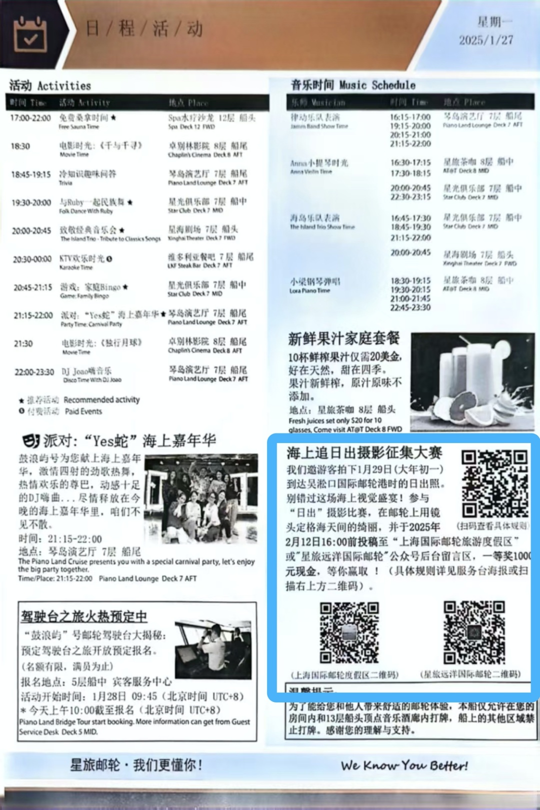 活动前期,精心设计的出团通知书,让游客清晰了解活动细节;借助邮轮上“日报”的广泛传播力,将活动信息精准推送;在显眼位置张贴色彩明艳的海报,通过多渠道全方位宣传,成功吸引众多游客知晓“吴淞口日出”活动,打响“船、港、岸”的联动,擦亮宝山滨江为“上海最佳日出观赏地之一 ”的名片。