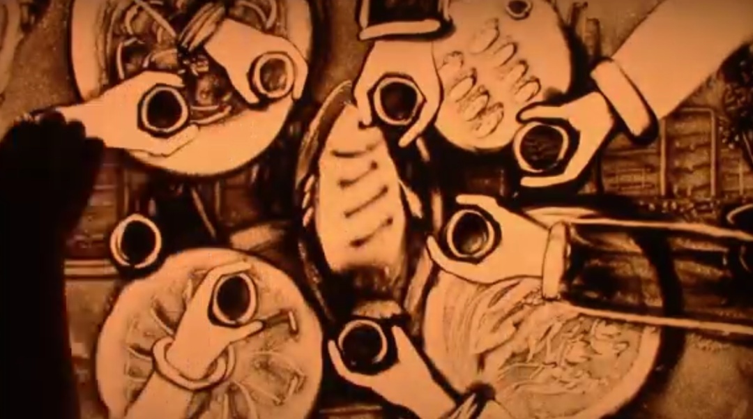 标志性的陆家嘴“三件套”,寓意吉祥的团圆饭,远处绽放的绚烂烟火,近处集聚的全家福,还有蜿蜒盘旋的金蛇缓缓出现……这场沙画创作活动,用独特的艺术形式展现了新春的欢乐、团圆的美好以及城市的文化底蕴。“我希望能够在新春之际,让人们在欣赏艺术的同时,也感受到了浓浓的年味和家的温暖。”曾荣说。