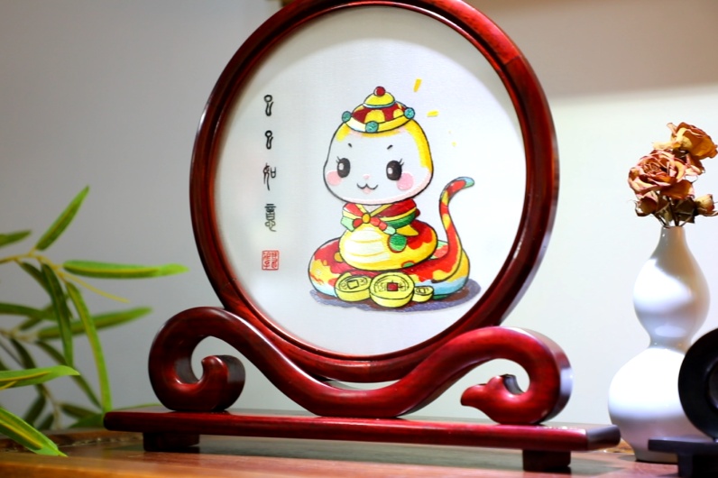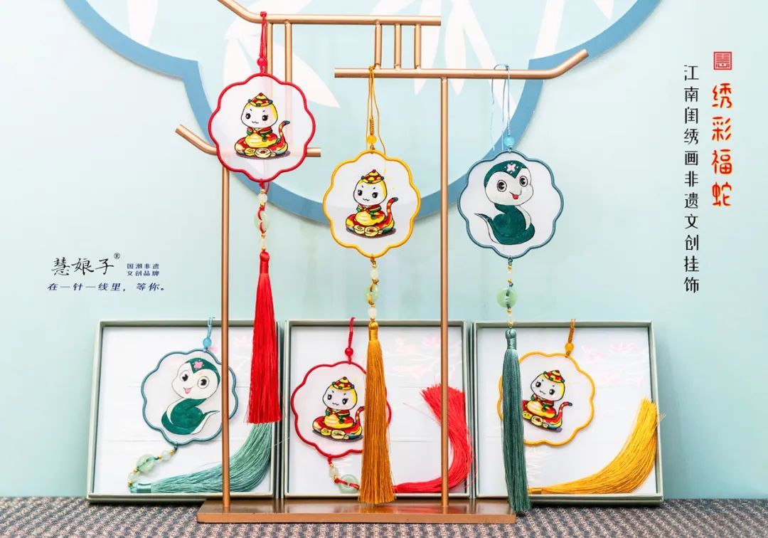 上海慧绣文化发展有限公司将蛇年元素融入江南闺绣画的创作中,设计了2款文创形象。
