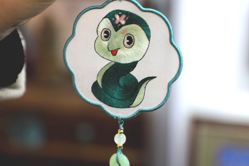 蛇宝形象双面绣挂件