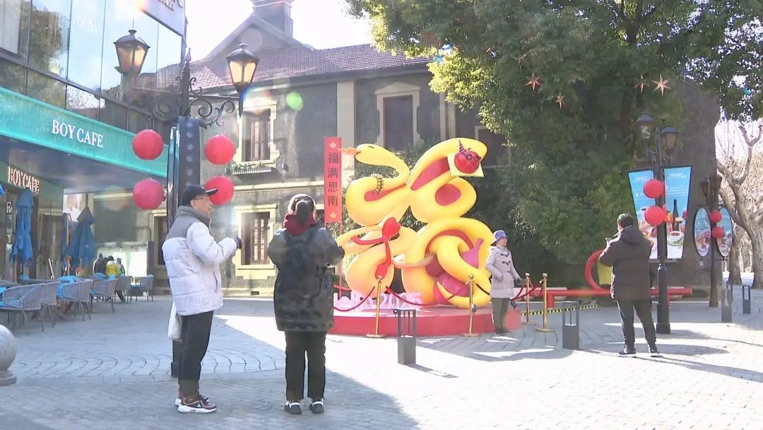 今年是农历乙巳年,也就是蛇年。所以,今年春节生肖蛇当然成为了街头的主角。在思南公馆,各种造型各异的蛇盘踞在各个角落,惊险精彩的舞龙舞狮更是让市民游客惊叹连连。