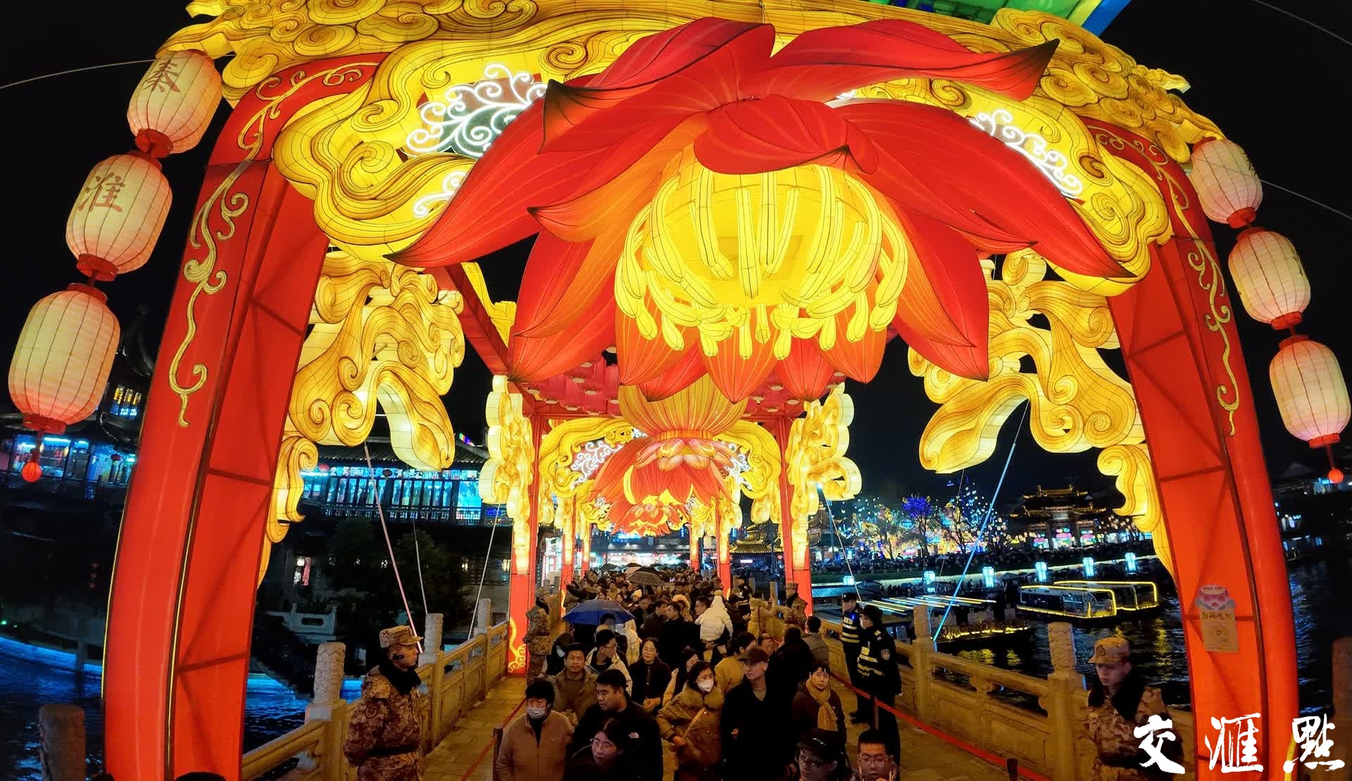 2025年1月31日晚,南京夫子庙人如织、灯如昼,市民和游人在雨中漫步,驻足在花灯烂漫处,浓浓的年味扑面而来。 新华日报·交汇点记者 吴俊摄