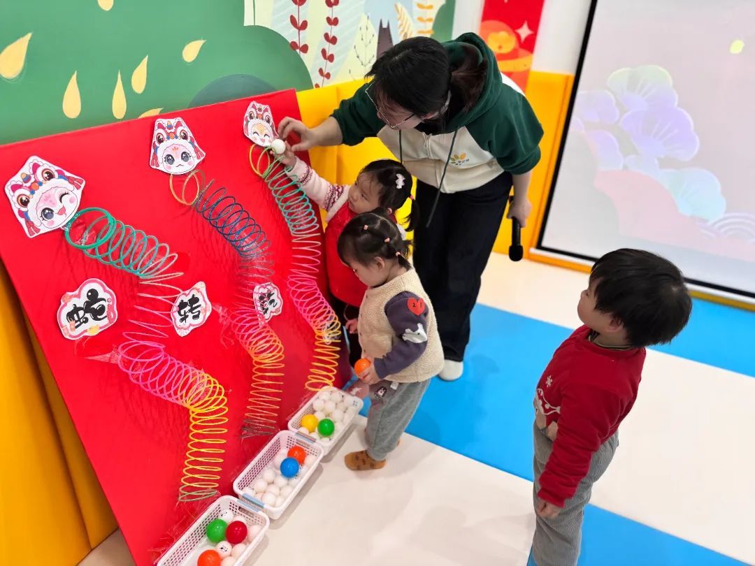 集体游戏的热烈氛围过后,老师们精心设计的“蛇转乾坤”“好运乒乓球”等游戏环节逐一亮相。“蛇转乾坤”中,小球沿“蛇身”滚动,锻炼孩子手眼协调;“好运乒乓球”里,孩子们专注投球,培养了专注力与耐心。通过这些寓教于乐的游戏,孩子们在享受快乐的同时,也在专注力、耐心以及身体协调性等多方面得到了全面的提升。