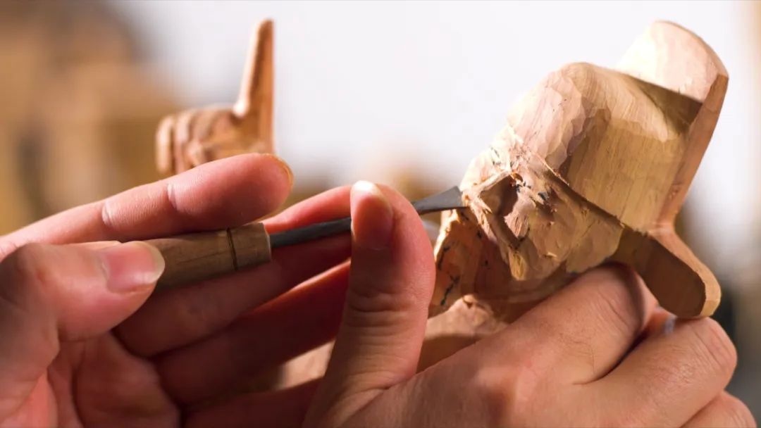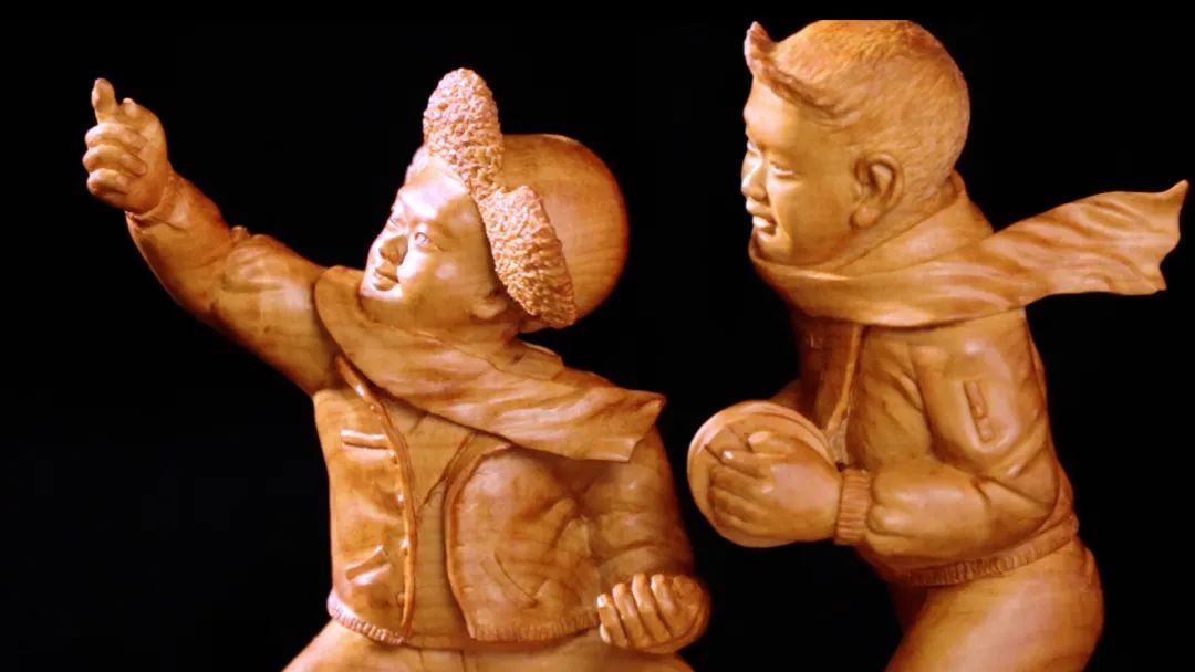 而后,随着匠人手中刻刀的起落,木屑纷飞,历经数月“一刀一凿”的雕刻,在只能做“减法”的木头上,木雕的形态与情绪渐渐显现。透过木雕的纹理,仿佛能感知时间的流淌。