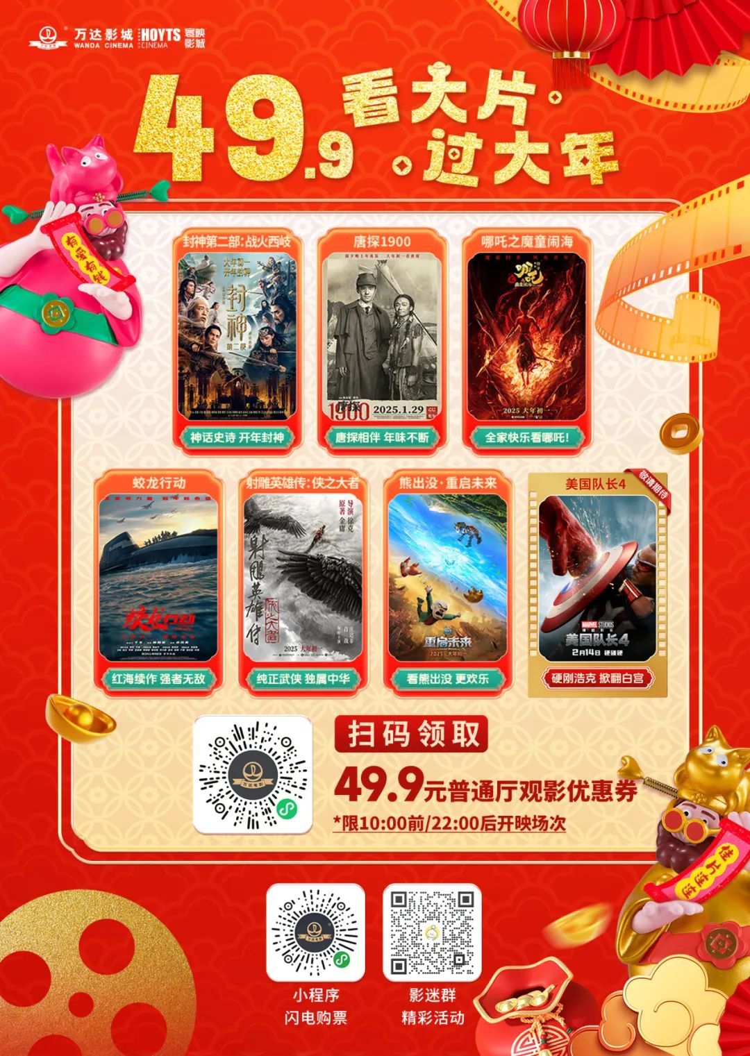 崇明万达影城22点之后观影可以享受49.9元超低价,活动截止至2025年2月28日。另外,初一至初六22时至次日6时还可以享受免停车费优惠哦。