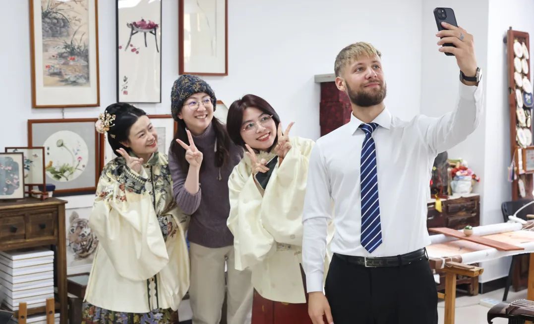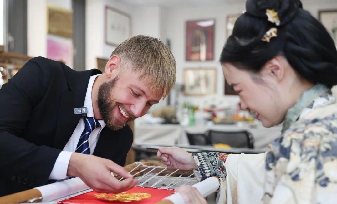 “现在喜欢非遗的留学生越来越多了。”阿紫说,这些来自异国他乡的留学生不仅限于对中国传统艺术如书法、国画、戏曲的欣赏与学习,更是将目光投向了更为细腻且富有地域特色的非遗项目,如剪纸、刺绣、陶艺、木偶戏等。
