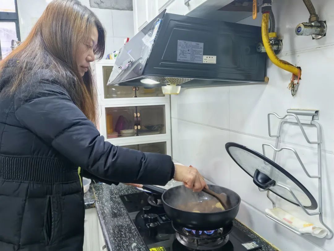 春节假期,家住山阴路208弄的朱莉萍在厨房忙得热火朝天。“逢年过节,我们家就会准备一道红烧肉烧蛋,肉意味着过好日子,蛋意味着团团圆圆。”她高兴地说道,“旧改阳光照到我们了。以前在老房子,住房条件差,就连厨房都是共用的。现在搬到新地方了,即便是过渡房,也比老房子好。同样的菜有了不一样的味道!”