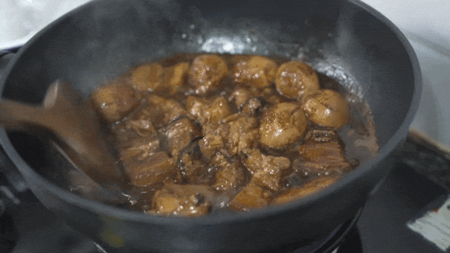 红烧肉烧蛋是经典本帮菜、年夜饭必吃佳肴,浓油赤酱,色香味俱全,这也是朱莉萍的拿手菜。