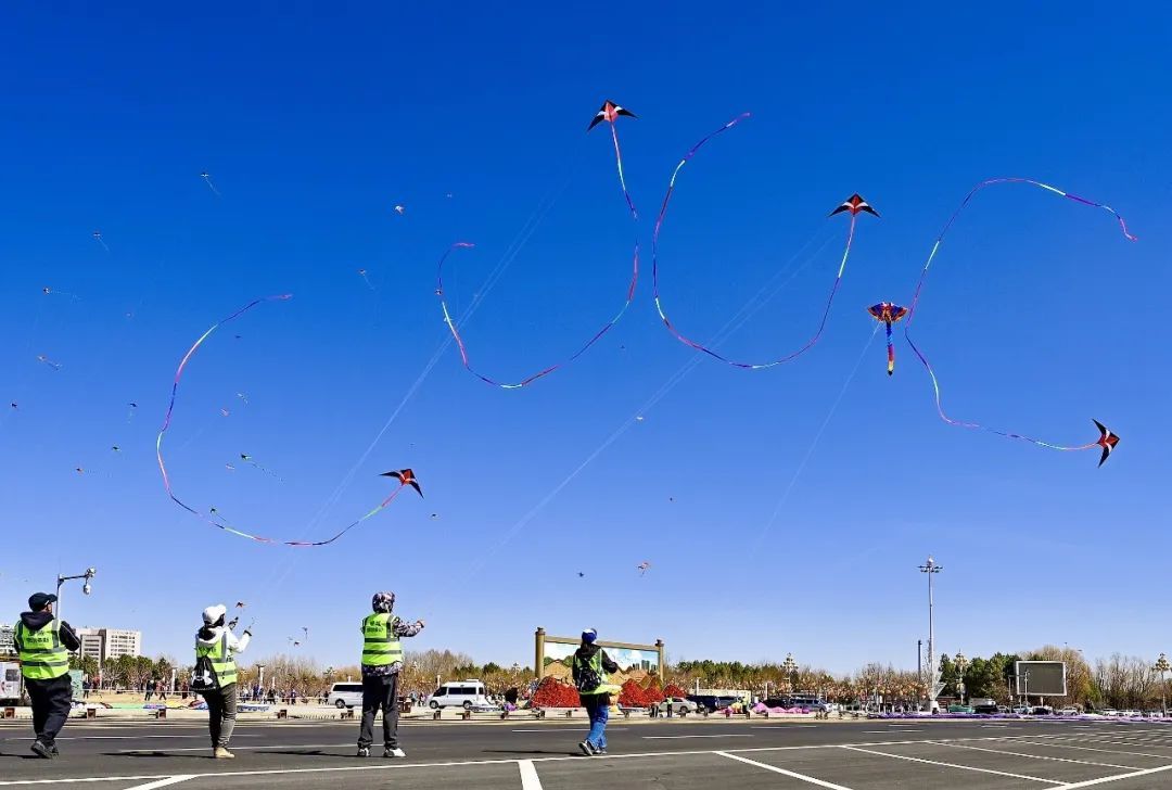 风筝飞到空中之后,需要我们不停地调整风筝的飞行姿态。通过收线、放线,或者是走向风筝、走向逆风处来进行放飞。