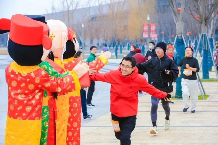 上午10时,系列活动重头戏——“狮山广场杯”苏州市首届街头田径挑战赛拉开帷幕。在此起彼伏的加油和欢呼声中,挑战赛的首个项目——“财神新春跑”开跑,2025名参赛选手与“财神”和“福禄寿喜”共同环绕狮山文化广场4圈,奔跑8.8公里,寓意新的一年,财源广进,福气、禄运、寿辰、喜乐环绕身边。现场还设有动感单车、匹克球、射箭、投壶等互动项目。大人小孩齐上阵,一起感受运动的乐趣,畅享热力四射“健康年”。