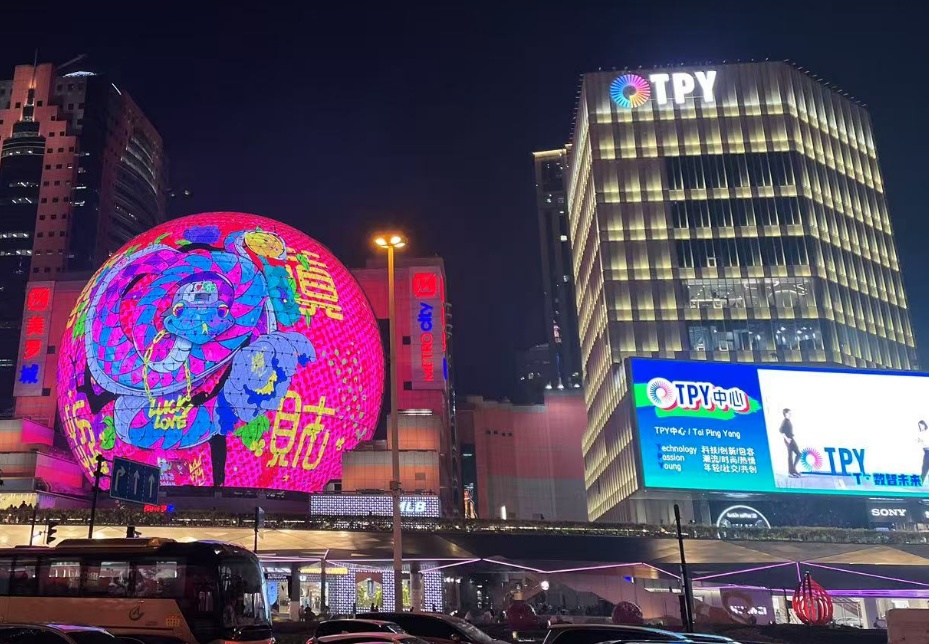 进入TPY中心,超大LED正在轮播这场虚拟与现实交织的奇妙世界。如果想要拍照打卡,天桥及马路对面是绝佳观赏机位。