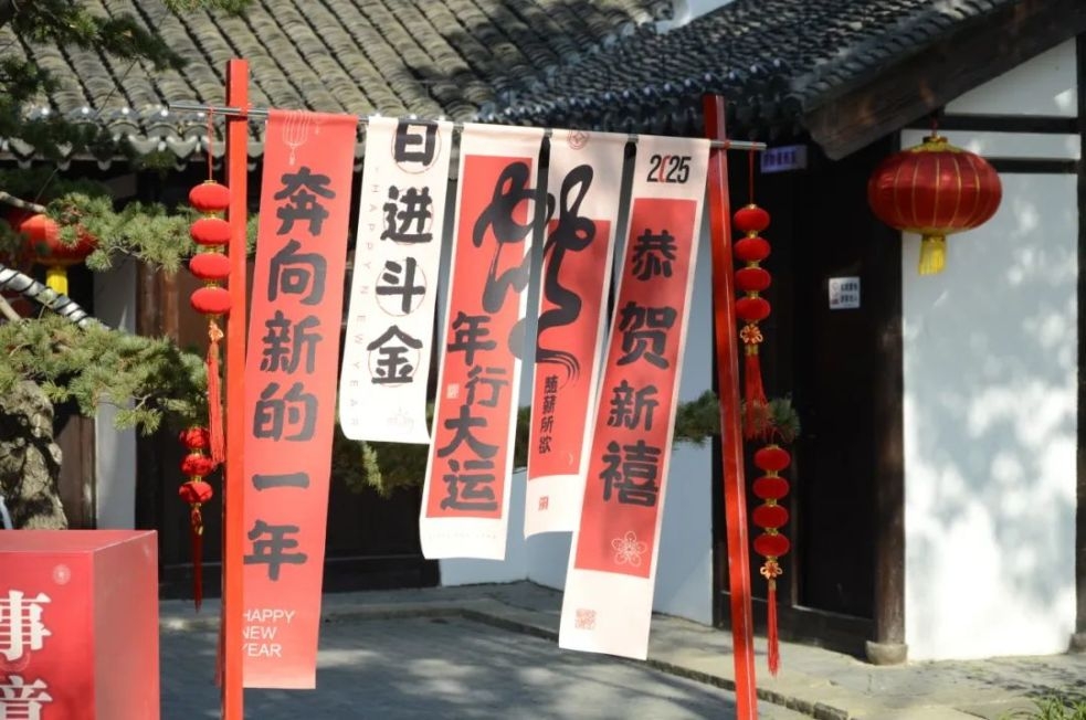 黄月亭故居外,一眼就能看到高高挂起的红灯笼和中国结,它们随风摇曳,散发出浓浓的节日气氛。这些红灯笼和中国结不仅点缀了公园的每一个角落,更寓意着新的一年红红火火、吉祥如意。