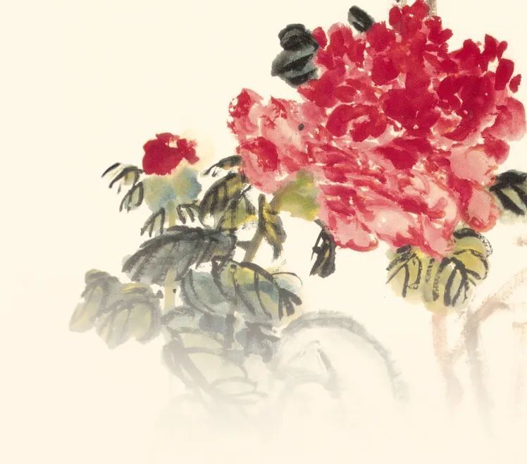 吴昌硕画中梅花一反古代文人绘画中高洁出尘的意象,而是被赋予充实而旺盛的精神气象。他常用写大篆和草书的笔法画梅,自谓“直从书法演画法”,总是放开笔机,纵横捭阖,笔墨酣畅淋漓。笔下梅花大多干如铁铸,傲骨铮铮,真力弥满,天机开张,与轻柔纤嫩的花朵形成鲜明对比,达到“花明晚霞烘,干老生铁铸”的效果。此画追求明媚淡雅之致,所画之梅极富穿插揖让的节奏之变,也充分发挥了其长于用线的优势。整幅作品体现出吴昌硕绘画一贯重气尚势的特征,铁虬屈曲,缟衣翩翩,淡蕊披离,郁郁苍苍,自有一种清逸脱俗之气。